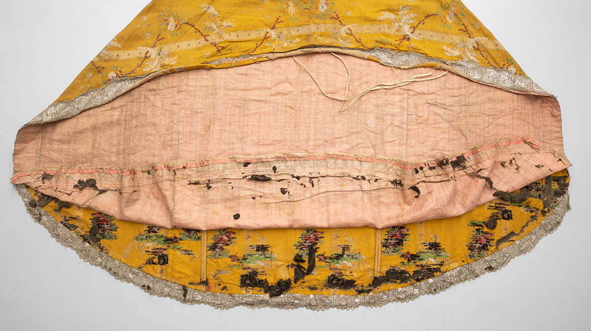 Felon je bio u vrlo lošem stanju očuvanosti, uzrokovanom upotrebom i neprimjerenim načinom pohrane, te prekriven prašinom, s nešto manjih mrlja nepoznatog porijekla i voska te mrlja otpuštenog bojila. Vodene mrlje zatečene su na podstavnoj tkanini. Krute i krte metalne niti na vezu i trakama bile su patinirane. Temeljna osnova svilenog lampasa nedostajala je u manjoj mjeri na prednjem dijelu, a broché potke i lamele nedostajale su mjestimično po cijeloj površini tkanine. Niti metalnih traka u manjoj su mjeri bile odignute ili su nedostajale. Široka posrebrena traka se uvijala i zatezala sve tkanine na prednjoj strani felona. Vezeni umetak bio je prilično kompaktan s nekoliko manjih puknuća papira u podlozi oslika te s nitima veza odvojenima od podloge. Manji broj niti veza je nedostajao. Podstavna lanena tkanina bila je izrazito oštećena po svim rubovima (pukotine, otvori i drugi oblici narušene osnovne strukture); najveći otvori bili su na prednjem dijelu. Na predmetu je zatečen manji broj povijesnih intervencija (šivanje neprimjerenim koncima).