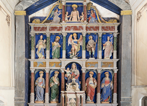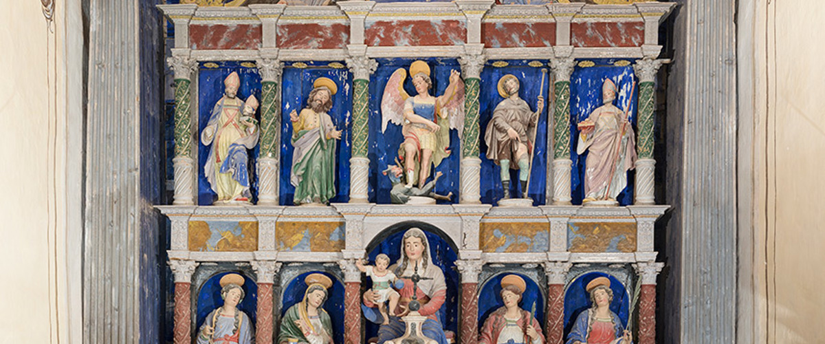 Impozantni trokatni glavni oltar mutvoranske župne crkve djelo je Paola Campse de Bobotija, jednoga od najvažnijih venecijanskih renesansnih drvorezbara. Pretpostavlja se da je oltar naručio pulski biskup Altobello Averoldi, zaslužan za obnovu crkve dvadesetih godina 16. stoljeća, a iz signature saznajemo da je oltar dovršen 1533. godine. Vrsno oblikovani, bogato pozlaćeni i pažljivo oslikani oltar višekratno je obnavljan, a u posljednjoj je obnovi, potkraj 19. stoljeća, radikalno prepravljen i preslikan.