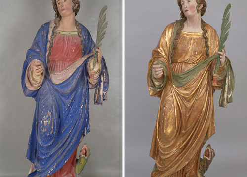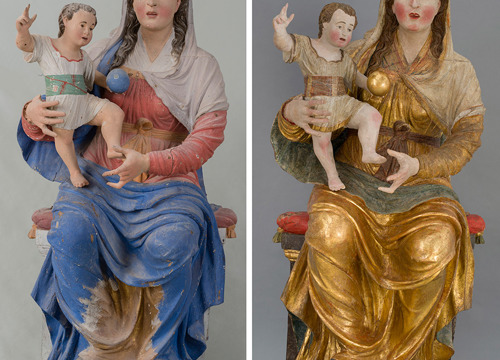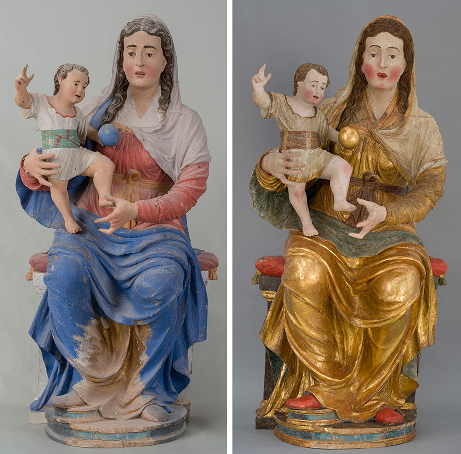 Konzervatorsko-restauratorski radovi (voditelj Miroslav Pavličić, Odjel za drvenu polikromiranu skulpturu 2, Služba za pokretnu baštinu) počeli su 2015. godine istraživanjima polikromiranog sloja in situ, a nastavljeni su u radionici Hrvatskog restauratorskog zavoda u Zagrebu. S obzirom na to da je ustanovljeno da je vrijedni izvorni oslik očuvan u dovoljnoj mjeri te da je slojeve neadekvatnog preslika moguće ukloniti bez njegova oštećivanja, odlučeno je prezentirati izvorni sloj. Iznimka su pûti većine skulptura, kod kojih je izvorni sloj oštećen u znatnoj mjeri, a preslik iz prve obnove oltara dovoljno je kvalitetan i sličan izvornom.