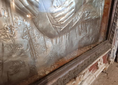 Ikona je zatečena u izrazito lošem stanju, s komadićima slikanog sloja koji se osipao i otpadao s nosioca (voditeljica: Sandra Šustić Cvetković, viši konzervator-restaurator, Služba za pokretnu baštinu). Zamijećeno je i mjestimično odvajanje bojenog sloja od preparacije. Fragmenti zaostali na drvenom nosiocu bili su prilično osjetljivi na pomicanja pa im je prijetilo daljnje osipanje i mrvljenje. Uz to su bili i iskrivljeni i nisu dobro nalijegali na podlogu. Uzrok tako lošem stanju ikone, osim loše tehnologije izrade, bilo je i stvaranje nepovoljne mikroklime unutar niše i ispod srebrnog pokrova, što je pogodovalo razvitku mikroorganizama koji se hrane vezivom iz slikanog sloja. Ti su mikroorganizmi (koji su uzrokovali gubitak veziva) bili vidljivi na slikanom sloju i nakon dopremanja ikone u radionicu, i to kao crne točkice. Uz pomoć dr. sc. Tomislava Ivankovića, izv. prof. i dr. sc. Marina Ježića s Odjela za biologiju zagrebačkoga PMF-a uspješno je identificirano čak devet vrsta mikroorganizama s ikone.