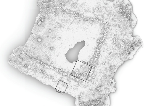Nalazište je podijeljeno na tri sektora: sektor 1 nalazi se ispred same palače, sektor 2 je pristanište, a sektor 3 ribnjak. U sektoru 1 iskopana je jedna sonda dimenzija 4x2 m, te dubine 2 metra. Kako je riječ o sondi koja je najbliža samim ostacima palače, u to je vrijeme bilo kopno, u sondi je pronađeno kamenje od razrušenih zidova same palače bez značajnijih pokretnih nalaza.