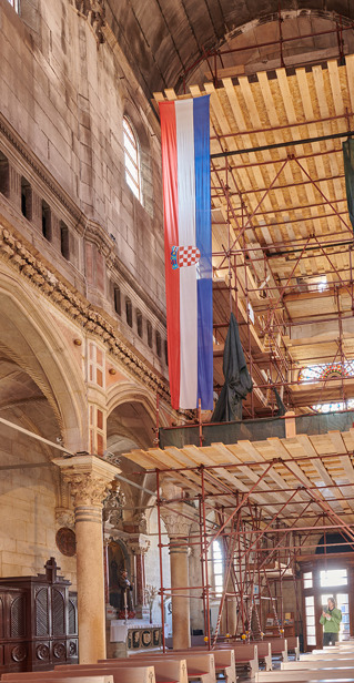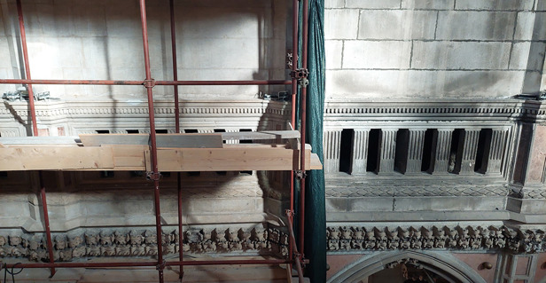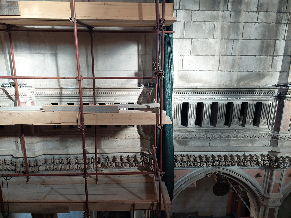 Do sada su izvedeni radovi u svetištu, prezbiteriju i većem dijelu bočnih brodova, zapadnom unutarnjem zidu i bočnim zidovima centralnog broda do visine florealnog vijenca. Zato se počelo s radovima na svodnim poljima glavnog broda i na površini zida glavnog broda, od florealnog vijenca do peta svoda.