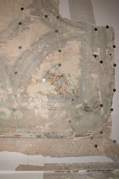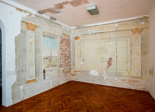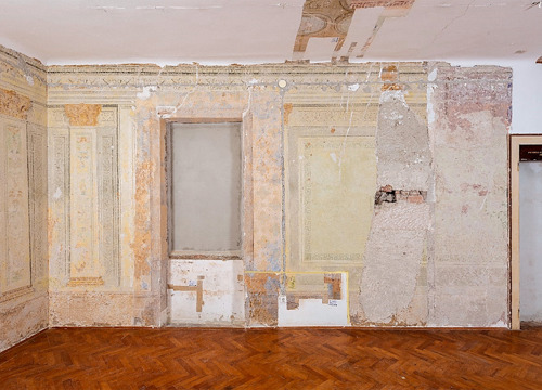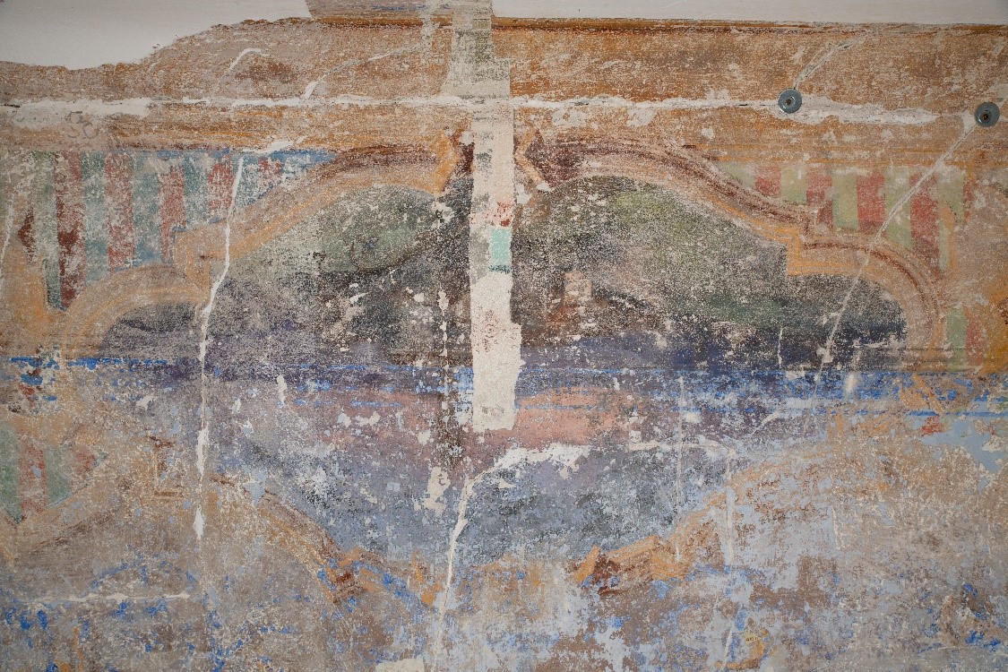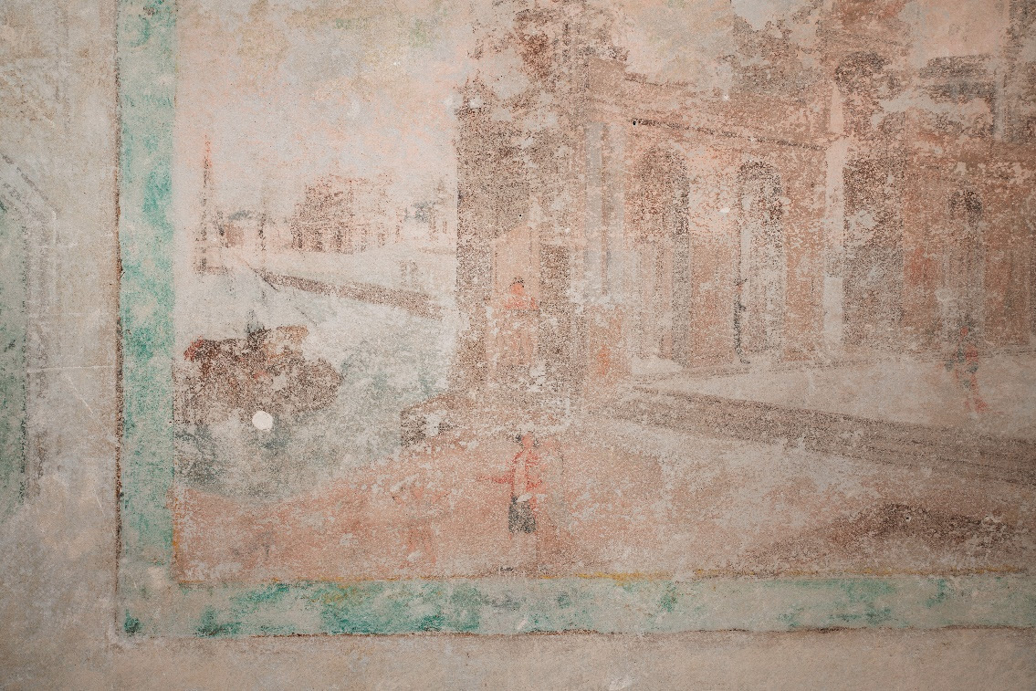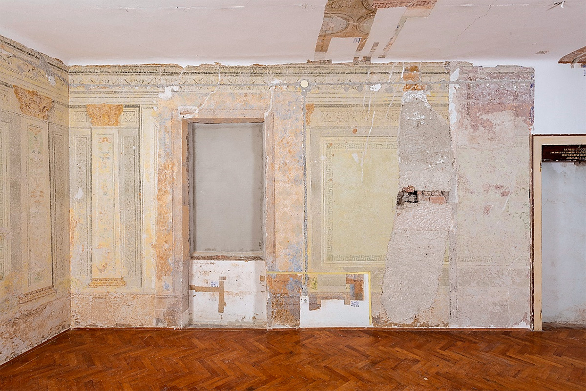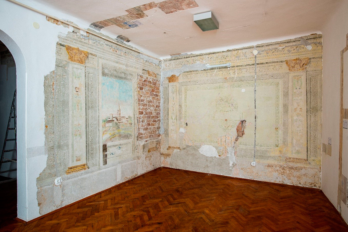 S obzirom na kompleksnost tumačenja geneze prostora i s njom povezanih stratigrafskih slojeva oslika, radi utvrđivanja stanja, valoriziranja i odluke o njihovoj prezentaciji, u dogovoru s nadležnim Konzervatorskim odjelom u Puli donesena je odluka o uklanjanju svih recentnih naliča i nekih slojeva preslika. Pri istraživanjima i uklanjanju recentnih slojeva s reprezentativnog trompe l'oeil oslika sa zidova zapadnog dijela prostorije 27, na sjevernom je zidu utvrđena naknadno zazidana prozorska niša koja je tijekom radova 2022. godine razidana. Nakon početka uklanjanja recentnih slojeva s oslika na stropovima u prostorijama 27 i 29 tijekom 2023. godine, uočena su velika oštećenja. Prijetilo je otpadanje fragmenata stropne žbuke s oslikom pa je u hitnoj intervenciji privremeno učvršćena stropna žbuka kako ne bi došlo do većega oštećivanja. Godine 2024. nastavljeno je uklanjanje recentnih slojeva s oslika na zapadnom dijelu stropa prostorije 27 (27a) i stropa prostorije 28. Planiran je nastavak uklanjanja recentnih slojeva s oslika stropa prostorije 26, kao i sa zidova u istočnom dijelu prostorije 27 (27b) te zidova u istočnom dijelu prostorije 29 (29b).