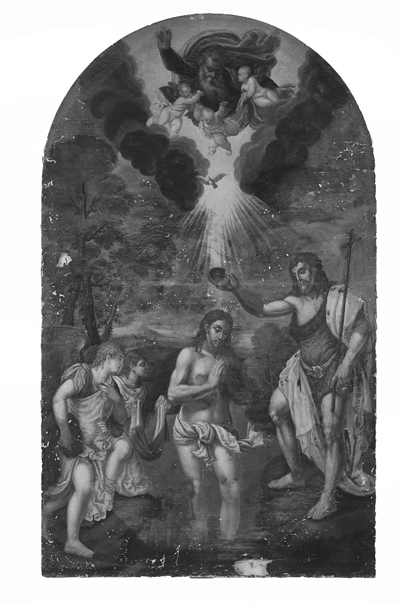 Detaljnim konzervatorsko-restauratorskim istraživanjem utvrđeno je izrazito loše stanje slike: deformirano i opušteno platno, požutjeli oksidirani lak, potamnjeli stari retuši i brojna mehanička oštećenja. Poseban problem činilo je prekomjerno opterećenje donjeg dijela slike zbog urušavanja žbuke iza platna, što je još više naprezalo nosilac. Mikropresjeci uzoraka, rendgenska fluorescentna spektroskopija i FT-IR analiza potvrdili su primjenu karakterističnih baroknih pigmenata i prirodnog mastiksa kao veziva i završnog laka.
