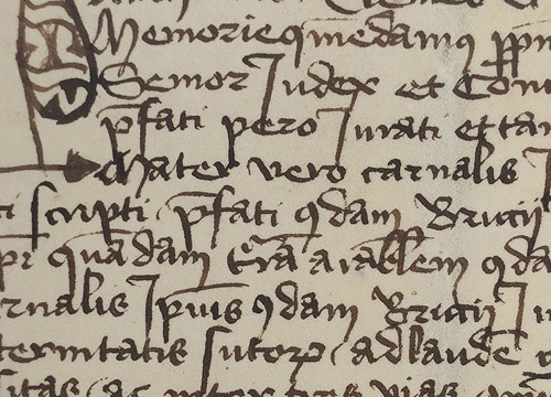Fragment oporuke izrađen od pergamene i ispisan tintom dio je Dokumentarne zbirke I. Muzeja i datiran u 1446. godinu. Pergamena se uobičajeno upotrebljavala za izradu isprava i knjiga i najčešće se proizvodila u samostanima. Rukopis je derivat latinice, ukrašen inicijalom slova N. Inicijal se ističe veličinom i oblikom te ornamentalnim i geometrijskim elementima.