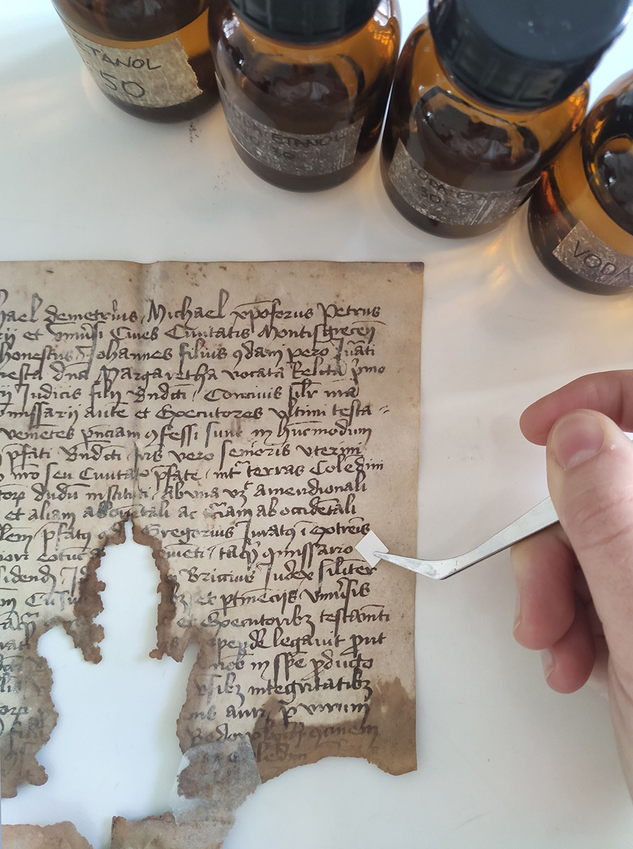 Početkom 2024. godine, u sklopu redovite djelatnosti, provedeni su cjeloviti konzervatorsko-restauratorski radovi na fragmentu oporuke od pergamene iz Hrvatskoga povijesnog muzeja (voditeljica: Majda Begić Jarić, Odsjek za papir i kožu, Odjel za tekstil, papir i kožu, Služba za pokretnu baštinu).