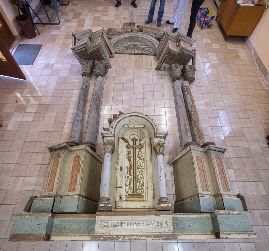 Oštećenja bojenog sloja na vratnici svetohraništa zapunjena su celuloznim kitom te nakon obrade površine retuširana smolnim restauratorskim bojama i neoksidirajućim pigmentom u smolnom vezivu. Kovani metalni okovi na vratnicama svetohraništa očišćeni su i premazani zaštitnim lakom, a mehanizam brave očišćen je i popravljen. Novoizrađeni dijelovi tretirani su močilima da bi se tonski uklopili u cjelinu. Na sve površine bez polikromije položen je sloj pčelinjeg voska koji je nakon sušenja ispoliran do umjerenog sjaja. Nakon završetka radova izrađena je nova drvena oplata za zidani stipes te nova nosiva konstrukcija s pomoću koje je oltar 2023. godine montiran na svoju izvornu poziciju u crkvi. (AP/AS)