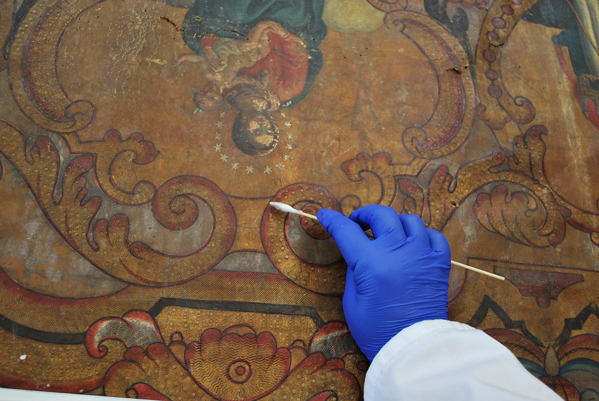 Konzervatorsko-restauratorski radovi (voditeljice: Marijana Jukić, konzervator-restaurator, 2021.; Nataša Miloslavić, konzervator-restaurator, 2022., Odsjek za papir, Restauratorski odjel Dubrovnik) počeli su dokumentiranjem zatečenog stanja, nakon čega je predoltarnik odvojen od drvenog okvira koji je na njega bio zalijepljen, a potom i od drvenog panela s poleđine. Provedena su konzervatorsko-restauratorska istraživanja kojima su obuhvaćene analize nosioca, stratigrafske i mikrokemijske analize mikropresjeka te probe uklanjanja prljavštine. Na kožnatom nosiocu uklonjena je površinska prljavština, nakon čega je tretiran sredstvom za čišćenje kože na bazi glicerina i manjeg udjela vode. U postupku čišćenja, naročito poleđine, korištena je silikatna koloidna glina, idealna za površine osjetljive na djelovanje vode. Postupkom vlaženja između paropropusne folije, poliesterske folije i kapilarnog filca koži je vraćena elastičnost. Nedostajući dijelovi materijala u sloju nosioca rekonstruirani su kožom iste strukture. Retuš je izveden na mjestima na kojima je nedostajao originalni oslik.
