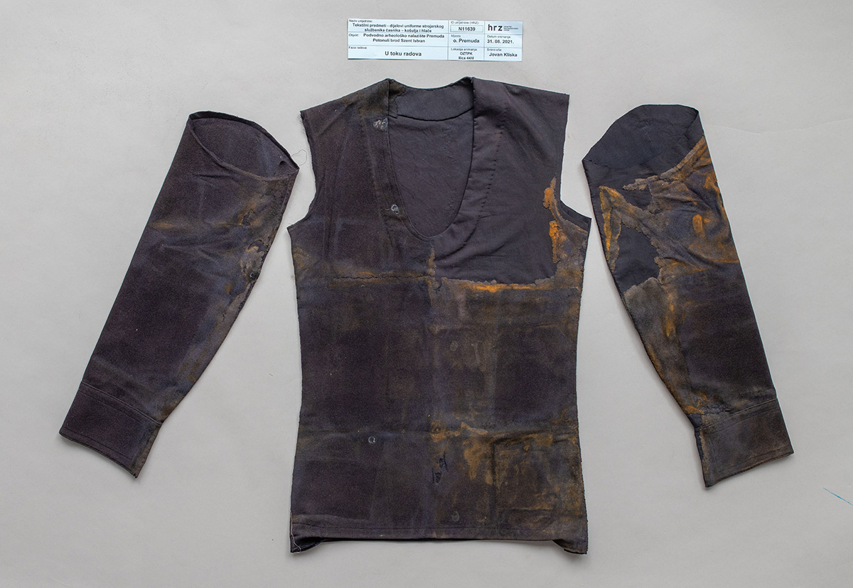 Na uzorcima tkanine s dijelova uniforme strojarskoga časnika (kaput, hlače i košulja) u Prirodoslovnom laboratoriju provedene su mikroskopske i mikrokemijske analize da bi se utvrdila vrsta vlakna. Dijelovi uniforme su pažljivo oprani, isprani te osušeni. Izrađena je grafička dokumentacija oštećenja i konstrukcija krojnih dijelova, a u tijeku su radovi na zatvaranju oštećenja te spajanju krojnih dijelova u cjelinu.