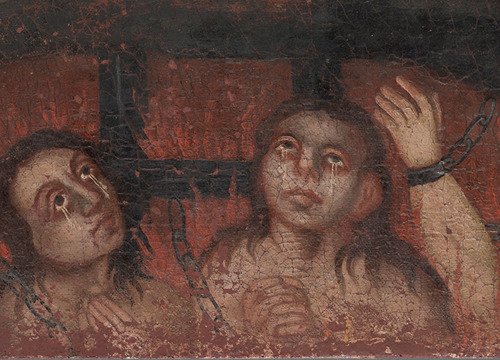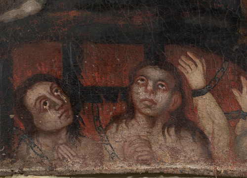 Nakon uklanjanja naslaga prljavštine, starog požutjelog laka i naknadnih rekonstrukcija oslika na donjem, izvornom rubu platna, postao je u cijelosti vidljiv originalni prikaz čistilišta. Nedostajući dijelovi nosioca su sanirani i nadoknađeni intarzijama. Rekonstrukcija dijelova podloge, kao i oštećena mjesta, izvedena je akrilnim kitom imitirajući teksturu originala. Nakon podstavljanja slike novim lanenim platnom, slika je napeta na novoizrađeni drveni podokvir. Mjesta na kojima je nedostajao slikani sloj, kao i rekonstruirani dijelovi podloge, tonski su podložena gvaš bojama. Dijelovi izvorno izvedeni zlatnim listićima rekonstruirani su zlatom u prahu. Nakon nanošenja izolacijskoga laka, izveden je završni retuš restauratorskim smolnim bojama imitirajući okolni original, a potom je na sliku nanesen završni sloj laka u spreju. (RMŠ)