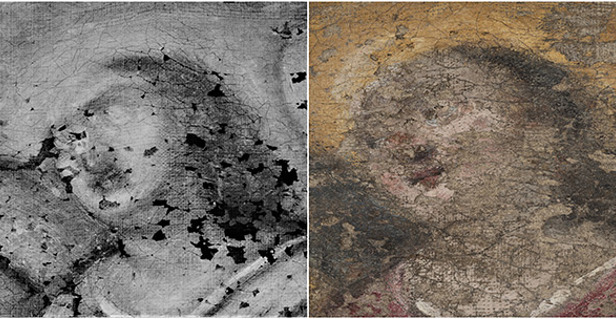 Usporedbom rendgenske snimke i zatečenog oslika bio je vidljiv potpuno izmijenjen položaj glave desnog odraslog anđela. U izvornom sloju, glava i pogled usmjereni su prema nebu, dok je u presliku glava bila predimenzionirana, a pogled poluzatvorenih očiju i oborene glave usmjeren prema Kristovu tijelu. Kristovo čelo je u izvornom sloju više i naglašenije, dok je trnova kruna elegantnije naslikana i ne dominira, za razliku od krune na zatečenom osliku. Zatečeni pastozni preslici lica posve su promijenili karakter prikazanih figura, što je primjetno i u donjem dijelu slike na drugom liku s lijeve strane, koji ima bujnu kosu, brkove i bradu, dok rendgenska snimka otkriva golo lice mršavih obraza i kratke kose.