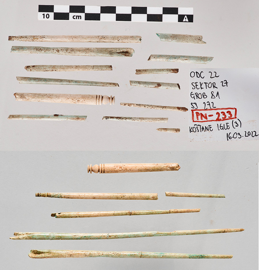 Završen je rad na 21 koštanom posebnom nalazu. Riječ o koštanim iglama, piksidama i pršljencima. Koštani nalazi očišćeni su mehanički, blagim četkicama, destiliranom vodom i alkoholom. Predmeti od više fragmenata su spajani, lijepljeni, konsolidirani te površinski zaštićeni.