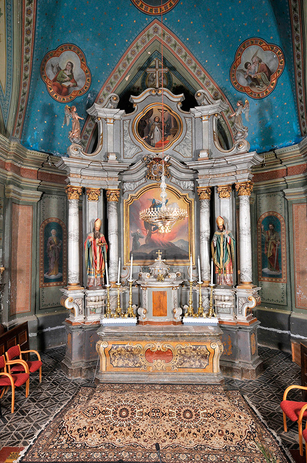 Uza zidove broda izvorno su stajala još dva barokna oltara koja su uklonjena tijekom obnove između 1902. i 1915. godine, kad je potpuno preuređen i inventar crkve, odnosno sve su površine zidova i svodova nanovo oslikane. S triju baroknih oltara uklonjeni su originalni kipovi te su postavljeni novi. Tijekom vremena sva su tri oltara preslikana s više slojeva uljane boje, a izvedena je i nova metalizacija (pozlata) dijelova oltarne arhitekture. U donjim su dijelovima (menze i predele) oltari preslikani trima naknadnim slojevima, dok su u zonama retabla i atike preslikani dvama slojevima uljanih naliča. Na retablu glavnog oltara sv. Ilije proroka postavljena je nova oltarna pala, a u središnjoj niši iza nje kip Krista s dva anđela. Na oltarima su dokumentirana brojna mehanička oštećenja sloja štukomramora (pukotine, odvajanje od podloge, otkrhnuti dijelovi dekoracije i sl.), a na površinama su uočeni i prethodni neadekvatni restauratorski zahvati.