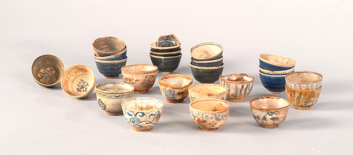 U teret keramičkog posuđa ubrajaju se male polukružne šalice na prstenastoj stopi (tur. fincan) za konzumaciju i lukovičasti vrčevi bez izljeva i ručke (tur. kavanos) proizvedeni u maloazijskom gradu Kütahyi, jednom od najpoznatijih središta za izradu keramičke robe na području Osmanskoga Carstva u 18. stoljeću. Njihova proizvodnja zasnivala se na oblicima i ukrasu kineskoga plavo-bijelog porculana te na tehnologiji izrade kvarcne keramike bijelog i čvrstog tijela sa slikanjem ispod prozirne glazure. U vrijeme najveće opsesije kavom, keramičari Kütahye prepoznali su nove zahtjeve tržišta i usredotočili se na proizvodnju šalica i pribora za serviranje kave. Dvanaest šalica pronađenih u ovoj kampanji ukrašeno je u plavo-bijelom stilu vegetabilnim i apstraktnim motivima preuzetima s kineskoga porculana. Većina šalica na dnu ima keramičarske oznake u obliku kruga, stiliziranog dijamanta ili zrna kave, a prevladavaju oznake u obliku triju zvjezdica. Oznaka s tri zvjezdice smatra se imitacijom zaštitnoga znaka tada popularnog europskog porculana iz Meissena kod Dresdena u obliku ukrštenih mačeva. Meissen se počinje koristiti tim znakom tek od 1722. godine, prema tome, ni potonuće broda nije se moglo dogoditi prije te godine.