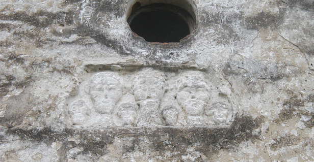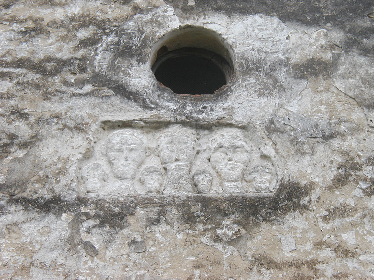 Budući da je građa vanjskih zidova crkve miješana (kamen i opeka), bilo je mnogo oštećenih i udubljenih mjesta koje je trebalo prije žbukanja ispuniti mortom i sitnijim dijelovima građe da bi se površina donekle izravnala. U međuvremenu je restaurator Mijo Jerković s Odjela za kamenu plastiku izveo zaštitne radove na kamenom reljefu sa sedam glava i na uglovnjaku s ugrebenom zvijezdom na glavnom pročelju, što je uključivalo čišćenje, minimalnu dopunu nedostajućih dijelova i višekratno natapanje vapnenom vodom radi učvršćenja kamena. Zbog vrlo visokih temperatura ljeti, privremeno su zaustavljeni radovi žbukanja pročelja jer bi vapneni mort popucao zbog naglog sušenja. Iz istog razloga nisu se dalje natapali ni kameni elementi vapnenom vodom.