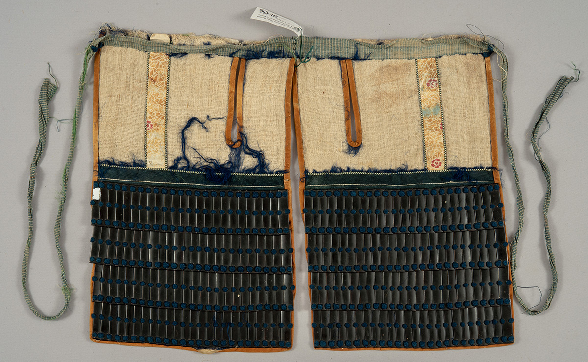 Dijelovi kompleta samurajskog oklopa datirani su prema utisnutim metalnim natpisima koje je dešifrirala i prevela dr. sc. Irena Srdanović, izv. prof., predstojnica Odsjeka i voditeljica studija na Odsjeku za azijske studije, japanski jezik i kulturu Filozofskoga fakulteta u Zagrebu. Dataciju su olakšale boje i trake te njihove specifične kombinacije, kao i tipologija dijelova štitnika karakteristična za određena stoljeća.