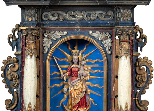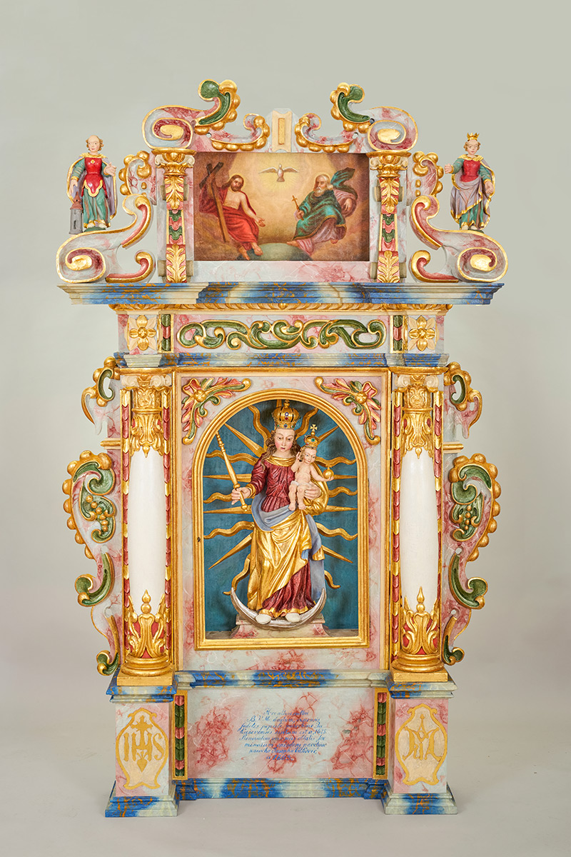 Oltar je dosljedno ukrašen motivima hrskavice: cvjetovi s četiri latice s umetnutim listićima, "dvostruke vitice", hrskavičasti cvijet i hrskavičasti prepleti.