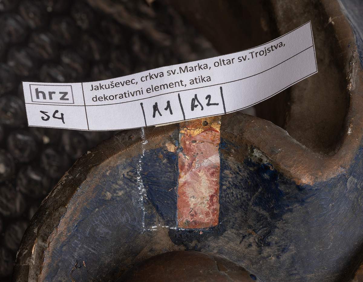 S obzirom na to da izvorni oslik iz 17. stoljeća nije očuvan u dovoljnoj mjeri, uklonjen je samo zadnji sloj preslika (plavi uljani sloj iz 20. stoljeća) te je prezentiran sloj obnove koja datira iz 1863. godine.