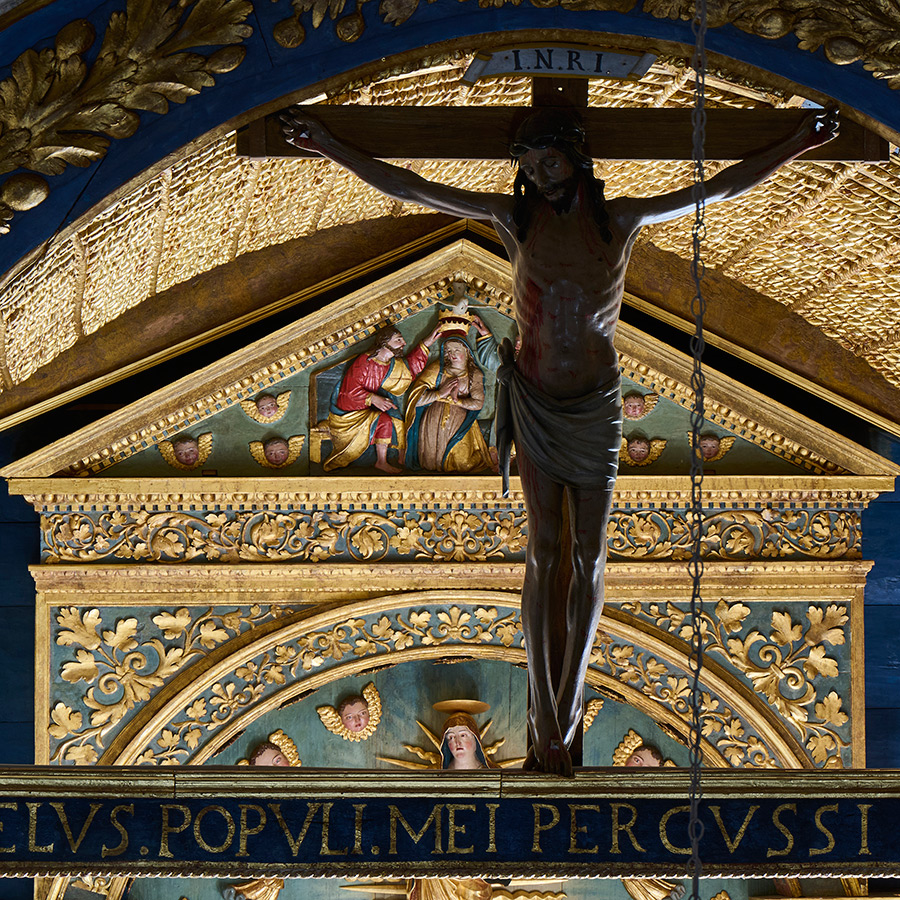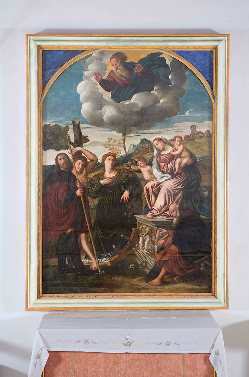 U recentnoj intervenciji primarno je bilo materijalno ojačati drveni nosilac na mjestima na kojima je zbog djelovanja crvotočine došlo do znatnog slabljenja mehaničkih svojstava materijala, osigurati stabilnu podlogu za podljepljivanje odignuća polikromije zapunjavanjem crvotočnih kanala i izraditi sustav potporne konstrukcije kojim bi se rasteretili određeni nosivi dijelovi sklopa, a težina i napetosti raspršile na veću površinu te se time omogućila i jednostavnija montaža. Odlučeno je da se prezentira posljednji sloj polikromije koji je rezultat neke od prijašnjih intervencija, nastale svakako prije tridesetih godina prošloga stoljeća, od kada datiraju prve sačuvane fotografije oltara, uz rekonstruiranje nedostajućih dijelova drvenog nosioca i nedostajuće polikromije kako bi se ostvarila oblikovna i vizualna cjelovitost djela. (NL)