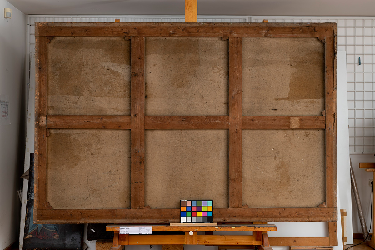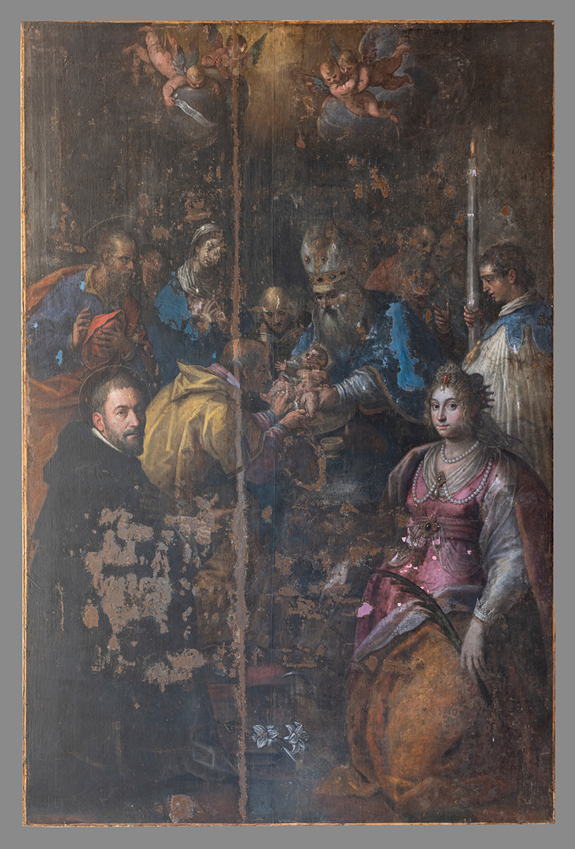 Neosporno visokokvalitetno djelo mletačkoga setecenta zatečeno je u lošem stanju. Dokumentiran je rad austrijskoga restauratora Ritschla koji 1912. godine sliku zatječe zalijepljenu na drvenu dasku izjedenu crvotočinom. Iste je godine slika prebačena na novi tekstilni nosilac, uz izvedeni retuš i lakiranje. Programom započetim 2021. godine (voditeljica: Ratka Kalilić, Restauratorski odjel Split) željelo se konzervatorsko-restauratorskim radovima pridonijeti očuvanju originalnih slojeva umjetnine te postići vizualnu i estetsku cjelovitost. Nakon cjelovitih istraživačkih radova, koji su uključivali ispitivanje površine i analizu strukture i sastava slikanih slojeva, odlučeno je da se uklone zatečeni potamnjeli lak i preslike izvedene tijekom austrijske restauracije. Kao povijesni dokument i izvor informacija o metodologiji i materijalima primijenjenima u povijesnoj restauraciji, zadržano je povijesno podstavljanje platnom. Platneni nosilac je izravnat i ponovno napet na originalni, restaurirani drveni podokvir. Sva oštećenja i nedostaci u sloju preparacije ispunjeni su kitom, a nove su površine obrađene tako da njihova tekstura odgovara okolnoj izvornoj površini. Za integraciju prepariranih zona bilo je potrebno rekonstruirati oštećenja bojenog sloja smeđim gvašem, koji imitira izvornu imprimaturu. Podslik je izveden samo na mjestima na kojima boje sadrže bijelu, što je rezultiralo svjetlijim tonom na tim područjima. Nakon zaštite cijele površine slojem izolacijskog laka, pristupilo se retušu smolnim lazurama te integraciji s izvornim oslikom. Cijela površina slike zaštićena je završnim slojem laka. (RK)