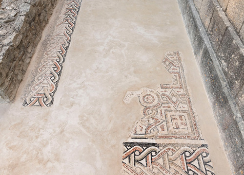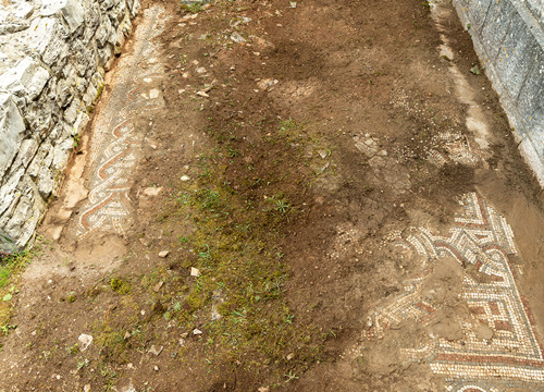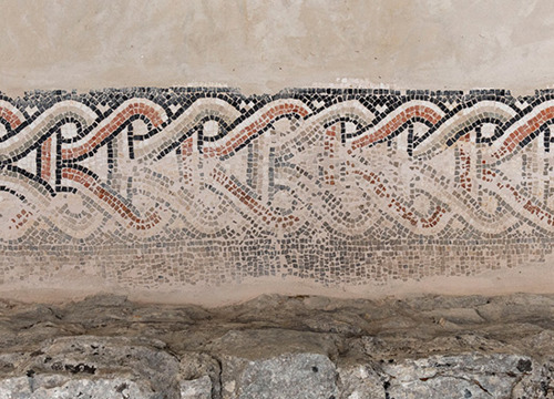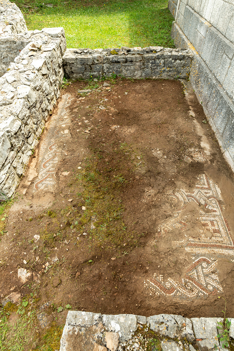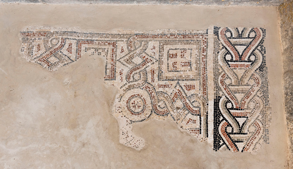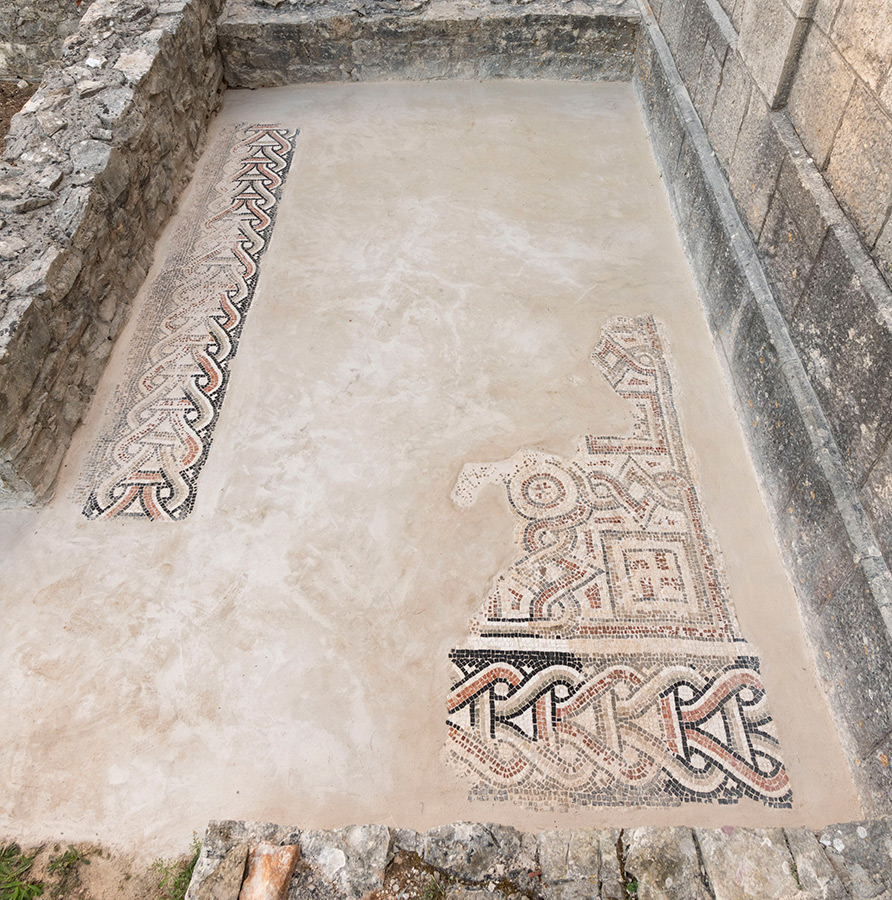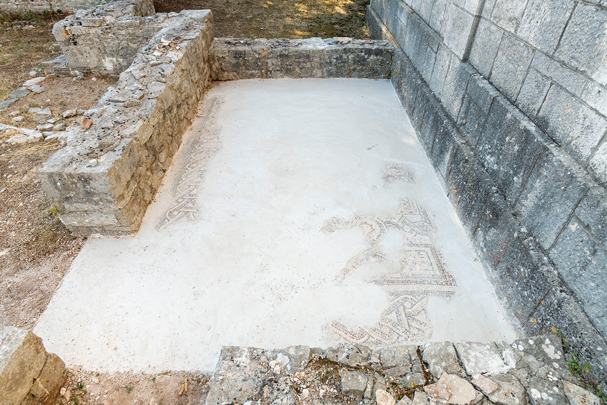 Ostaci antičkih mozaika iz jednobrodne starokršćanske bazilike sv. Stjepana u naselju Grohote