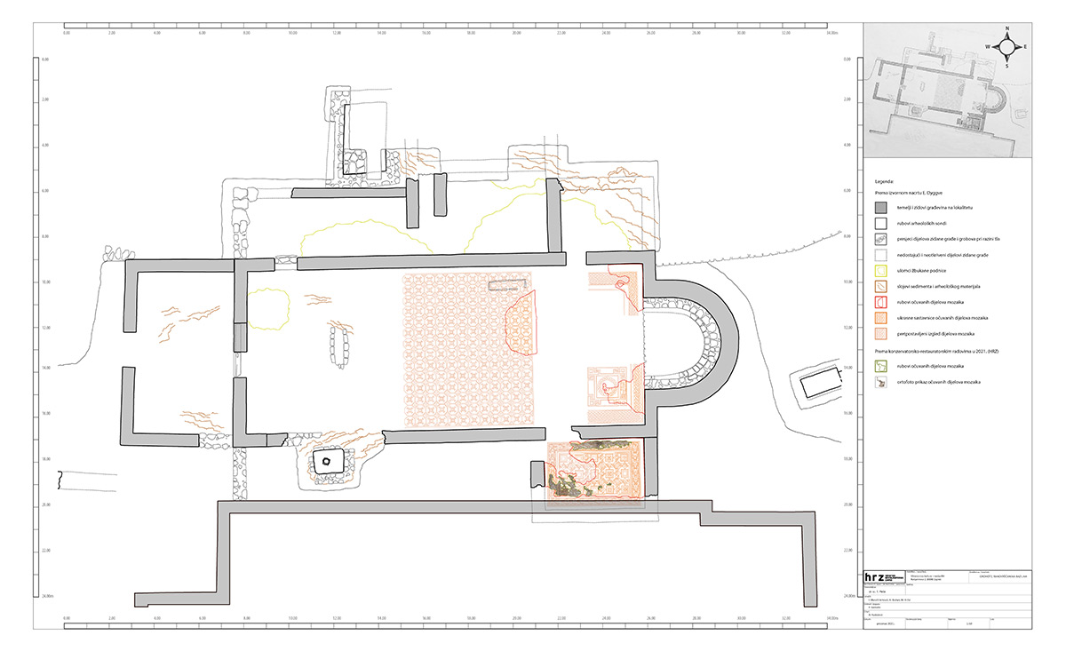 Ponovnim arheološkim istraživanjima provedenima od 1978. do 1979. godine i revizijskim istraživanjima mozaika 2021. godine, utvrđen je njihov nepovratni gubitak. Mozaici iz glavnog broda sasvim su izgubljeni; sačuvale su se samo rasute tesere, dok su se u prostoriji južno uz apsidu in situ sačuvala dva ulomka mozaika.