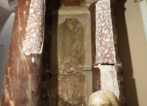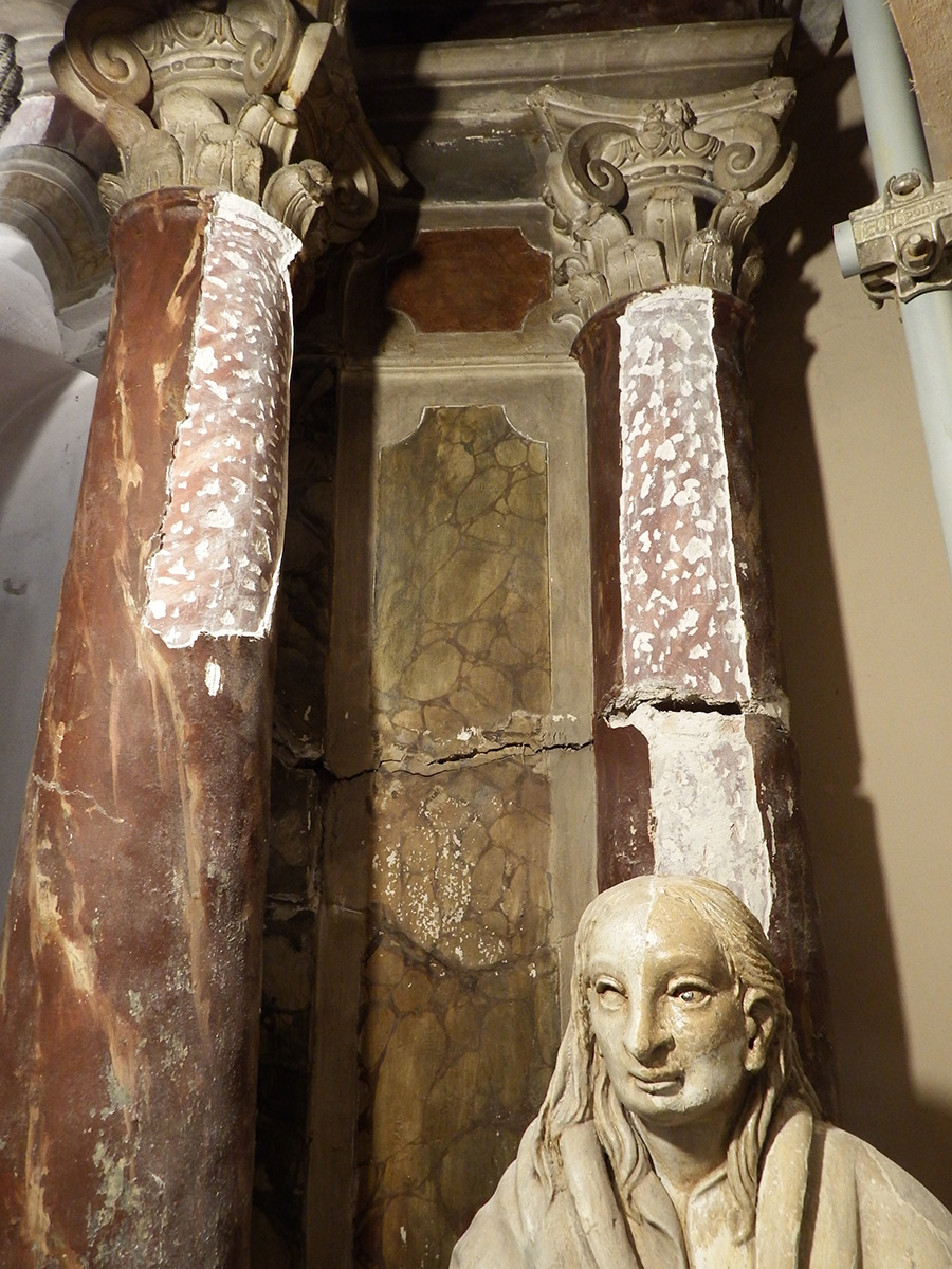 Prije početka konzervatorsko-restauratorskih radova na svim su oltarima bila vidljiva oštećenja i promjene u odnosu na izvorno stanje. Oltari su naknadno preslikani te su na mnogim mjestima prevučeni tankim slojem nove žbuke, a velike pukotine, kao posljedica slijeganja tla, znatno su oštetile zone retabla. Nakon konzervatorsko-restauratorskih istraživanja zaključeno je da se oltarima vrati izvorni barokni izgled.