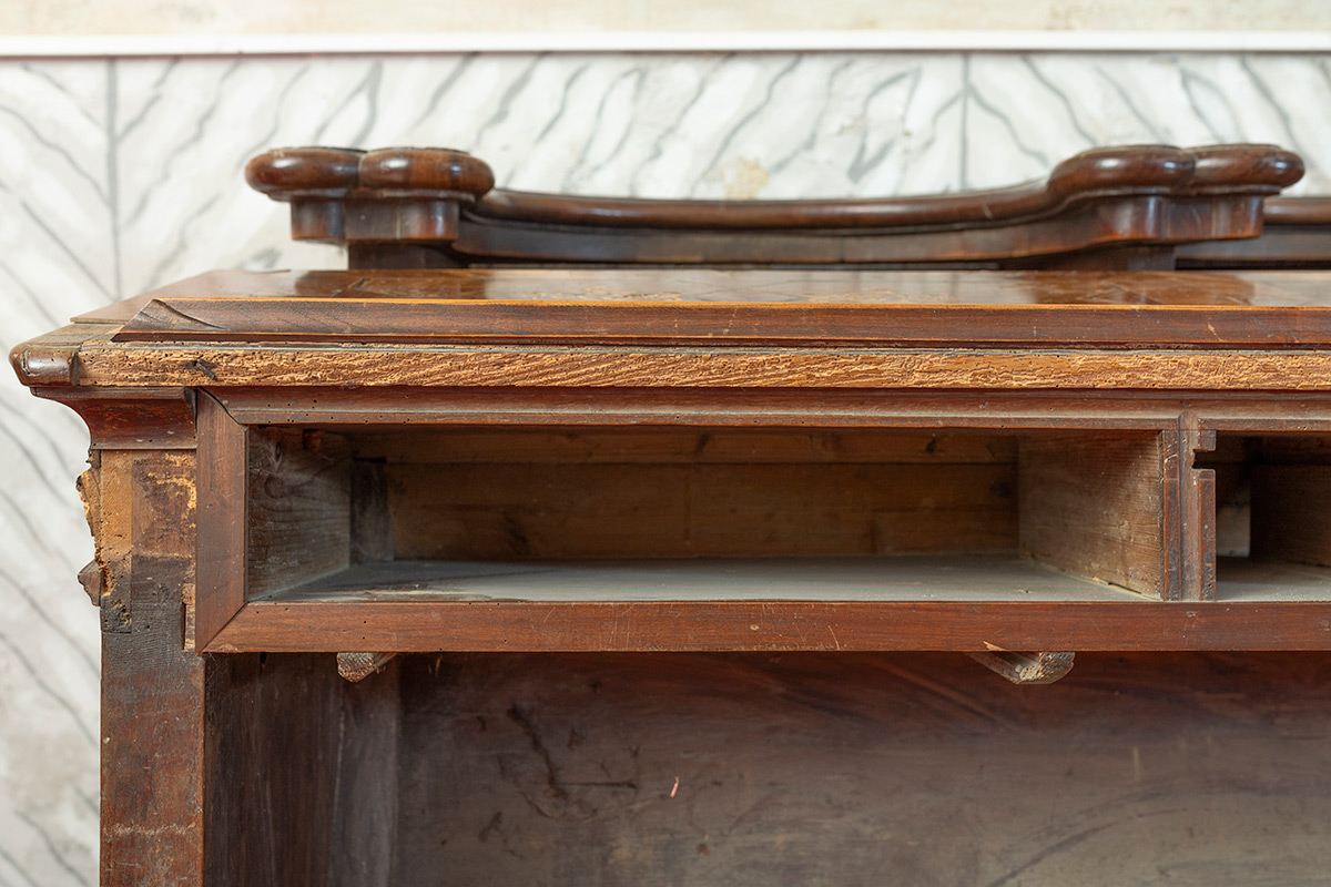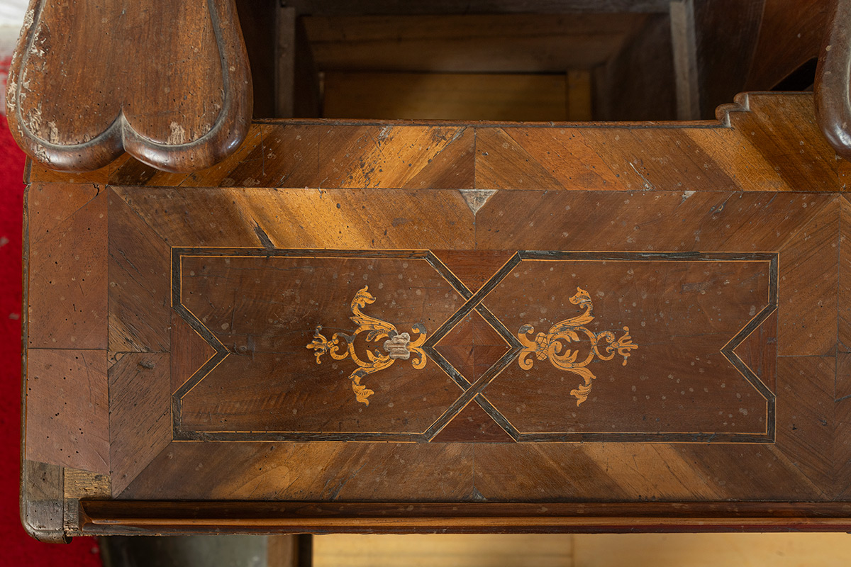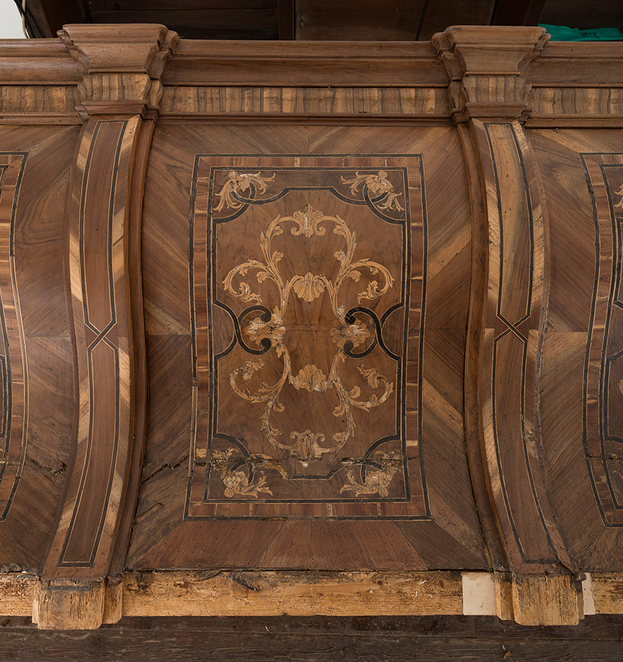 Nakon restauratorskih istraživanja radovi na klecalu počeli su natapanjem oštećenoga drva konsolidantom te stolarskom sanacijom rasušenih spojeva i pukotina. Podlijepljeni su odignuti furniri i intarzije, a potom su uklonjeni neodgovarajući zakiti i nitrocelulozni lak. U tijeku je zapunjavanje pukotina na prednjoj strani nosive konstrukcije klecala kako bi se podloga pripremila za postavljanje rekonstrukcija furnira i intarzija. Završetak radova planira se za 2025. godinu. (TATS)