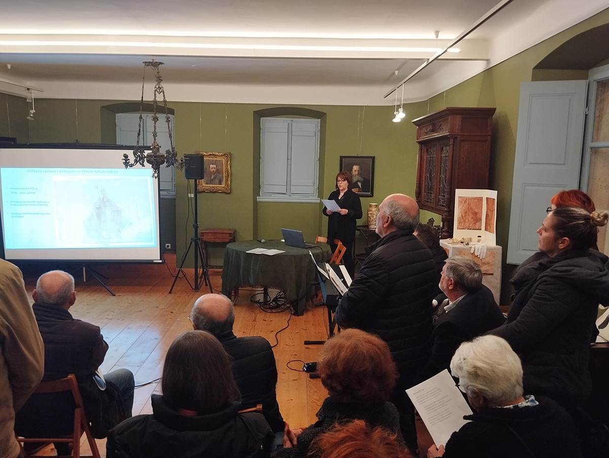 Zastava s prikazom sv. Nikole, koju je oslikao Vlaho Bukovac 1902. godine, dio je zbirke pinakoteke župne crkve sv. Nikole u Cavtatu. Na Odsjeku za tekstil Restauratorskog odjela Ludbreg Hrvatskog restauratorskog zavoda zastava je konzervirana i restaurirana 2019. godine i otada se čuva u Ludbregu. U studenome 2024. zastava je vraćena u Cavtat i izložena u Kući Bukovac. Povrat je proveden na inicijativu v. d. ravnatelja Muzeja i galerija Konavala Ivana Kušelja, načelnika Općine Konavle Bože Lasića i župnika Župe Cavtat don Mate Karamatića te u dogovoru s nadležnim konzervatorima iz Dubrovnika.