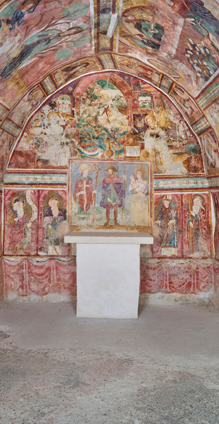 U završnoj fazi izvedena je reintegracija slikanoga sloja s pomoću pigmenata vezanih Tyloseom MH300 i Klucelom G. Veće žbukane nadoknade povijesnoga restauratorskog zahvata na svetišnom zidu su sačuvane i dodatnom obradom tonski prilagođene okolnom osliku. Nove žbukane nadoknade tonirane su neutralnim tonom svjetlijim od izvornoga. Oštećenja na izvornom sloju minimalno su retuširana tehnikom tonskog prilagođavanja lazurnim nanošenjem lokalnog tona, a retuš je mjestimice izveden i tehnikom tratteggio. Na taj način postignuta je ujednačenost, a time i bolja čitljivost prikaza. Tragove biološkog onečišćenja nije bilo moguće ukloniti pa je njihova vidljivost umanjena retušem. Faza završne prezentacije usmjerena je na umanjivanje vidljivosti oštećenja uz uvažavanje povijesne, umjetničke i starosne vrijednosti zidnih slika.