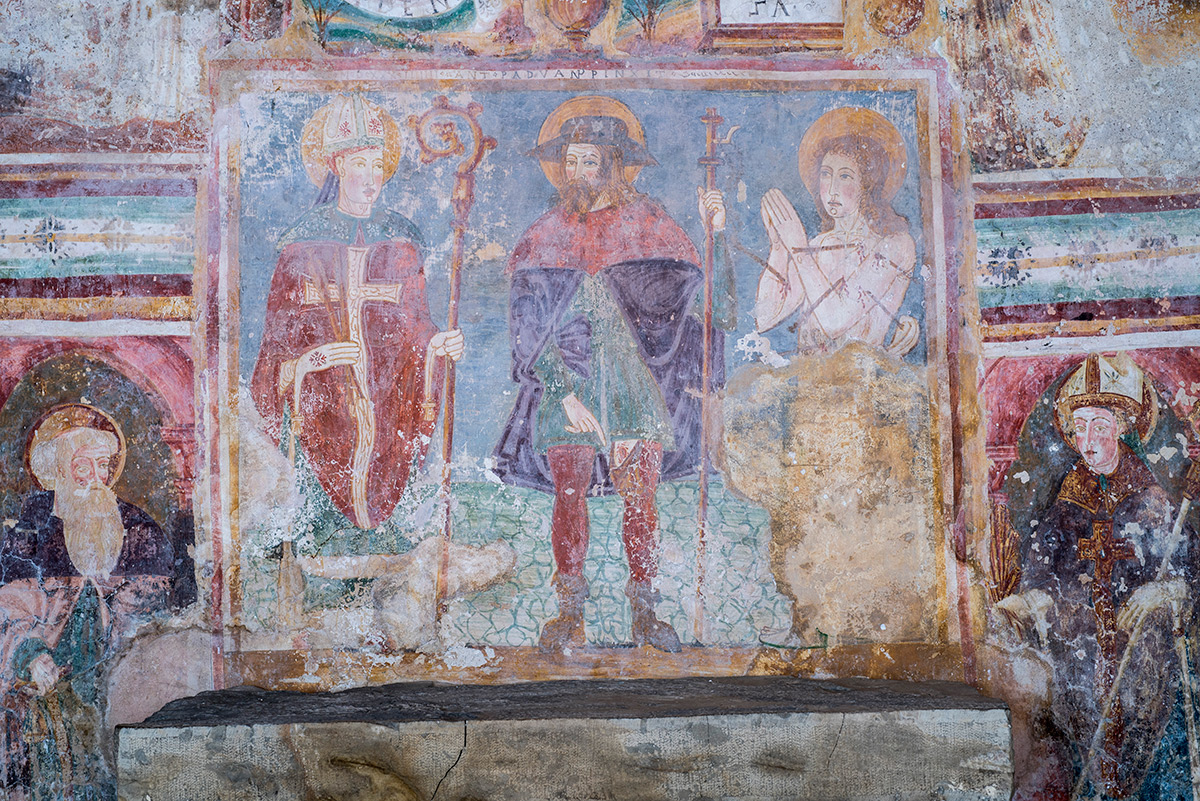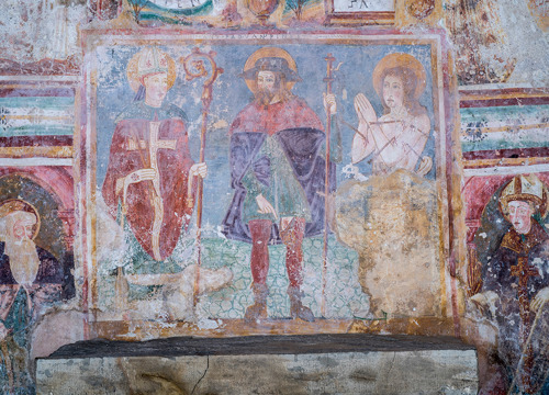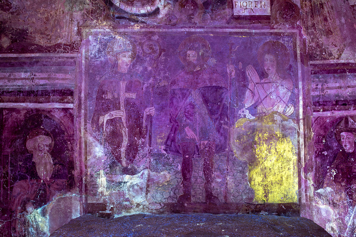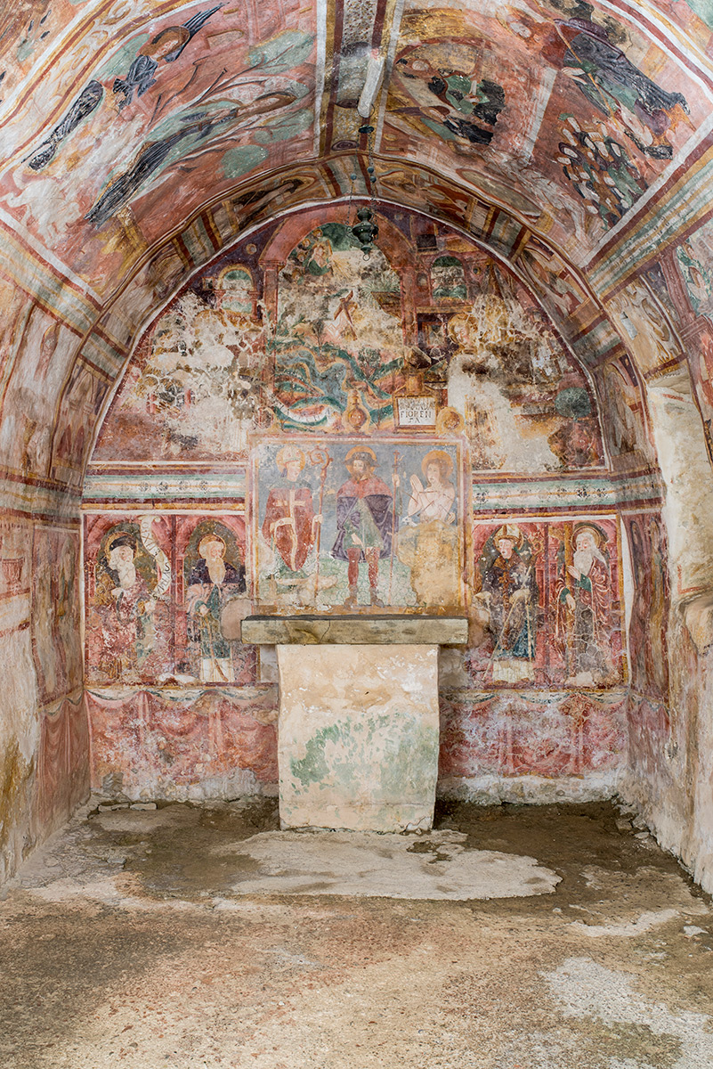 Prije početka građevinske sanacije crkve izvedena je primarna zaštita oslika na svim površinama. Oštećeni rubovi žbukanih slojeva obrubljeni su vapneno-pješčanom žbukom. Na najugroženijim dijelovima oslika izveden je facing s pomoću japanskoga papira i otopine veziva Tylosa MH300 u destiliranoj vodi. Ta su područja potom injektirana industrijskom vapnenom smjesom za injektiranje PLM-A i PLM-AL.
