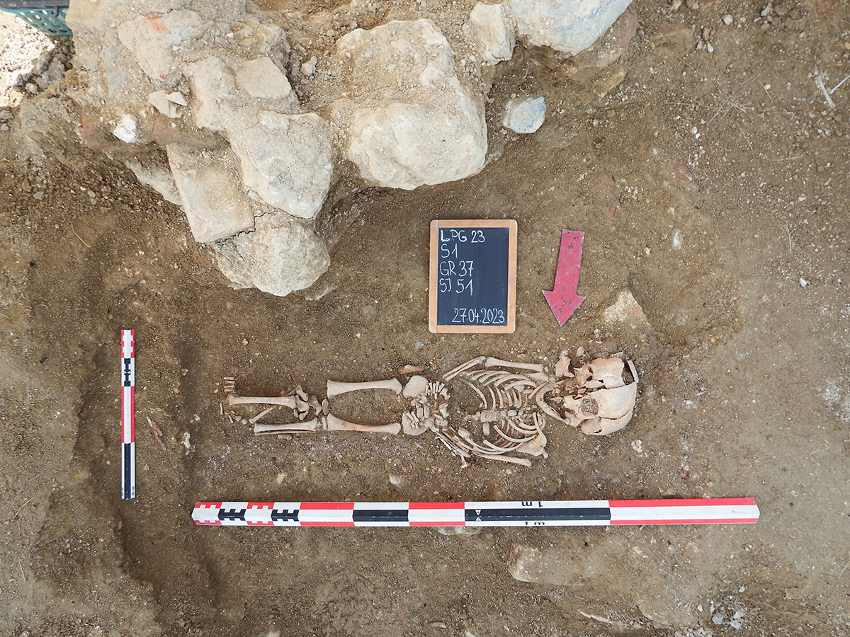 Otkriveni zidovi upućuju na različite tehnike zidanja. Sjeverni zid je građen od kamena vezanog vapnenim mortom, dok je južni i dio zapadnog zida građen od fragmentiranih antičkih opeka. Pri probnom arheološkom iskopavanju 2019. godine utvrđeno je postojanje jednobrodne crkve s polukružnom apsidom. Ovogodišnjim istraživanjima je većim dijelom istražen zapadni dio crkve, gdje je istraženo 46 grobnih cjelina, od čega 42 pripadaju grobovima djece.
