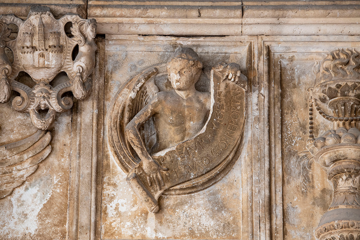 Hrvatski restauratorski zavod (voditeljica: Helena Ugrina, Odsjek za kamenu plastiku Split, Služba za nepokretnu baštinu) počeo je u kolovozu 2023. s dokumentacijom, istraživanjima i probnim konzervatorsko-restauratorskim radovima na kamenoj plastici. U prvoj fazi radova snimit će se reljef kombinacijom 3D snimanja i fotogrametrije, provesti povijesna i konzervatorska istraživanja te istraživački konzervatorsko-restauratorski radovi na kamenoj plastici, koja uključuju i probna čišćenja te konsolidaciju. Detaljnije stanje kamene građe bit će poznato nakon dobivenih rezultata ostalih laboratorijskih analiza koji su nužni za izradu dokumentacije i metodologije restauratorskih radova planiranih za 2024. godinu. (HU)