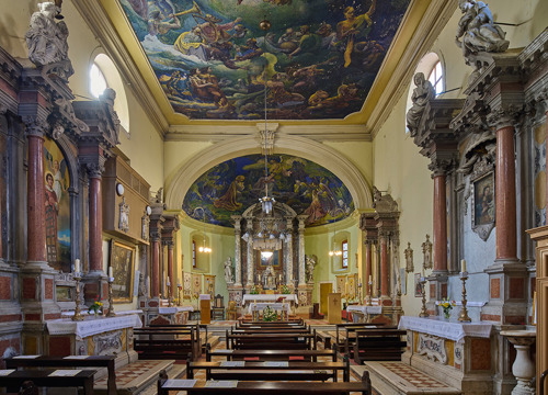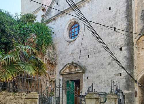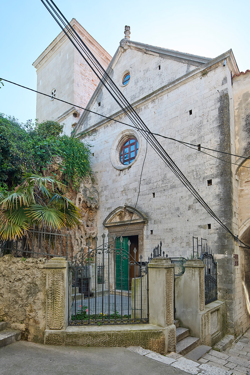 Franjevački samostan smješten je južno od crkve. Povezan je s njom lučnim prolazom koji premošćuje ulicu i kojim se u razini kata pristupa u prostor pjevališta. Samostanski kompleks zapravo je nastao obuhvaćanjem niza povezanih manjih zgrada, među kojima se reprezentativnošću detalja ističe spomenuta gotička palača Foscolo.