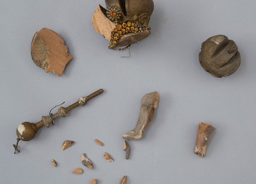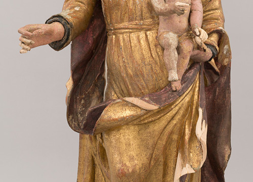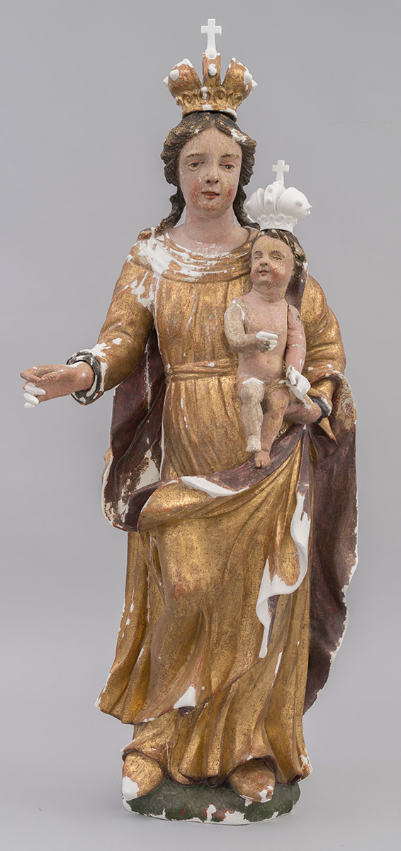 Skulptura je evakuirana i smještena u čuvaonicu umjetnina Hrvatskog restauratorskog zavoda. Ustanovljeno je da je odlomljeno više dijelova: Bogorodičina kruna i žezlo, mali prst njezine desne ruke, vrh cipele, kruna maloga Isusa, njegova desna noga, lijeva ruka te prsti desne ruke. Površina skulpture bila je prekrivena slojem nečistoće, s mnogim vidljivim mehaničkim oštećenjima. Na skulpturi su zatečeni tragovi prethodnih intervencija, uključujući diskolorirane popravke pozlaćenih površina i djelomično preslikane dijelove inkarnata, kao i kasnije dodatke, poput Djetetove krune i žezla.
