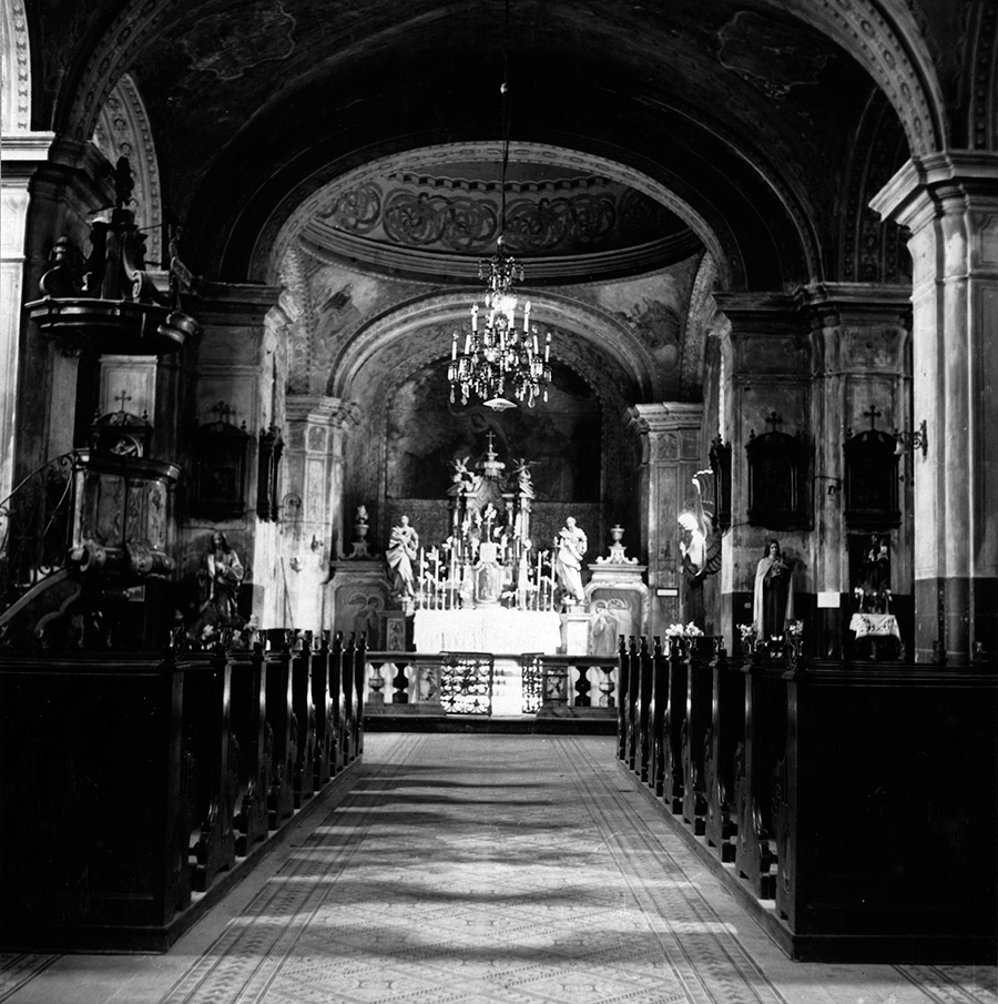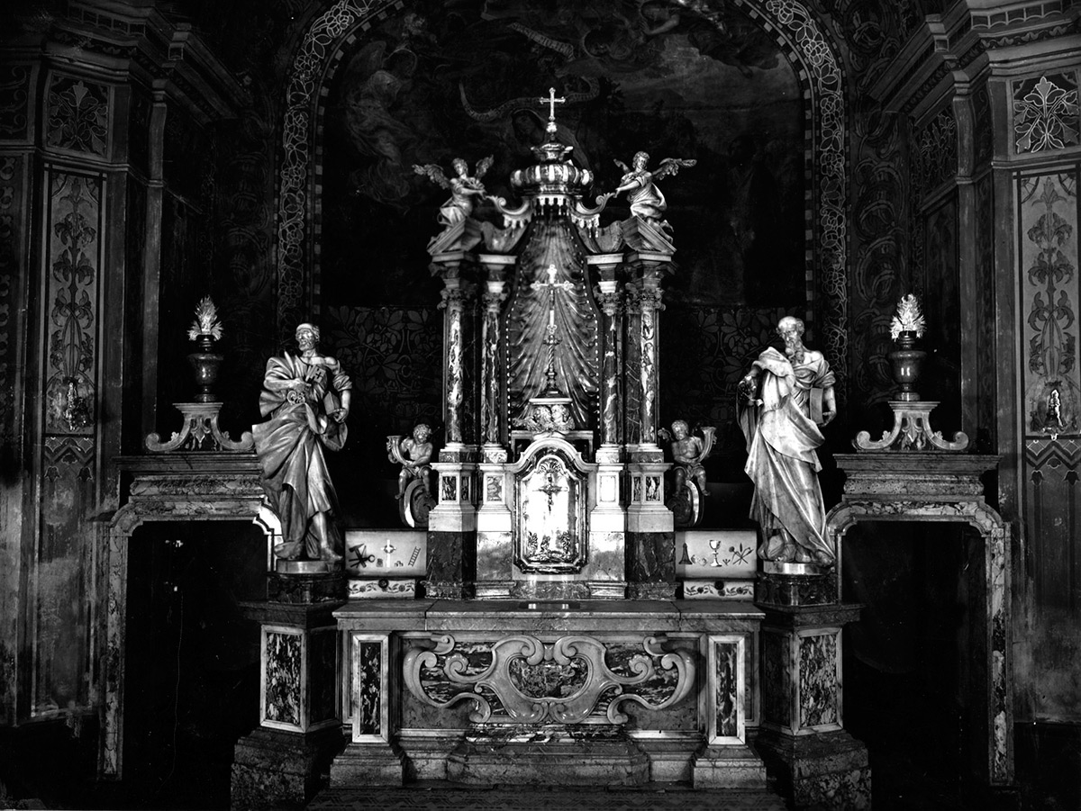 Kanonik dr. Kamilo Dočkal (1879. – 1963.), utemeljitelj i prvi ravnatelj Dijecezanskog muzeja, sve je skulpture preuzeo i pojedinačno evidentirao, istraživši i njihovu povijest pregledom kanonskih vizitacija u kojima se opisuje inventar župne crkve sv. Ivana Krstitelja. Uspoređujući izvještaje iz 1706. i 1729. godine, Kamilo Dočkal zaključuje da je skulptura Bogorodice s Djetetom vjerojatno 1706. godine bila smještena na drugom katu glavnoga oltara župne crkve, a dvadesetak godina poslije premještena je na donji dio bočnoga oltara Majke Božje, na mjesto prijašnje slike. Donekle je ostalo nerazjašnjeno kada je točno i zbog čega skulptura iz čuvaonice Dijecezanskog muzeja dospjela na mramorni glavni oltar, na poziciju na kojoj je prethodno bilo metalno raspelo. Raspelo je vidljivo na fotografiji Đure Griesbacha iz 1930. godine, kao i na fotografiji iz ostavštine Anđele Horvat iz 1974. godine. Na fotografiji objavljenoj u monografiji Župe iz 1985. godine, u središtu oltara 'pojavila' se drvena polikromirana skulptura Bogorodice s Djetetom. Možemo pretpostaviti da je skulptura između 1974. i 1985. godine preuzeta iz čuvaonice Dijecezanskog muzeja i postavljena na mramorni glavni oltar crkve na Dolcu. Moguće je da se to dogodilo u sklopu nekih opsežnijih radova u crkvi potkraj sedamdesetih i početkom osamdesetih godina 20. stoljeća.