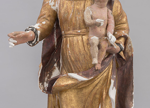 Provedena su konzervatorsko-restauratorska istraživanja nosioca, veziva, bojenog sloja i naknadnih intervencija (voditeljica: Vanesa Gjini, Odjel za drvenu polikromiranu skulpturu 2, Služba za pokretnu baštinu) te je na osnovi rezultata osmišljena metodologija daljnjih radova. Odlomljeni i otpali dijelovi su spojeni, a oslabljeni drveni nosilac je učvršćen. Površinska nečistoća je uklonjena, a odignuti dijelovi podloge i bojenog sloja konsolidirani su i stabilizirani. Nadoknađeni su gubici drvenog nosioca i dijelovi draperije te je prema komparativnom materijalu izrezbareno Bogorodičino nedostajuće žezlo te Djetetovi prsti i kruna. Uklonjeni su neprimjereni naknadni preslici, a oštećenja u sloju podloge i boje su zapunjena. Dovršetkom konzervatorsko-restauratorskih radova uspostavljena je stabilnost svih gradbenih slojeva, što je omogućilo prezentaciju umjetnine u skladu s valorizacijom povijesnih slojeva.