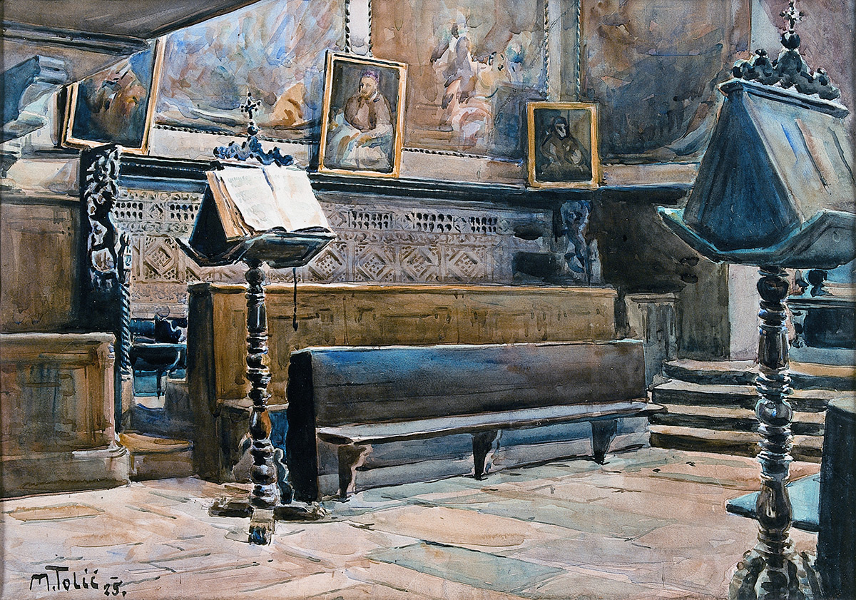 Drveni liturgijski namještaj imao je važnu ulogu u opremanju crkvenih interijera od 14. do kraja 16. stoljeća. Važan dio toga namještaja bila su drvena korska sjedala, izrađivana za brojna svetišta katedralnih i redovničkih crkava, osobito franjevačkih. Unatoč promjenama u liturgiji i arhitekturi tih prostora te kontinuiranom habanju osjetljivih polikromiranih drvenih konstrukcija korskih sjedala, slijedom čega su se prekrajala ili odbacivala, na hrvatskoj obali od Poreča do Lopuda sačuvano je petnaest primjera te vrijedne, a malo poznate baštine, dok arhivski zapisi svjedoče o više nestalih primjera.