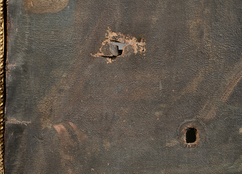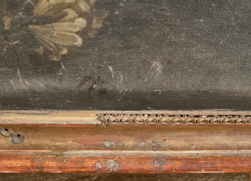 Ukrasni okvir rađen je u tehnici polirane i mat pozlate. U donjem dijelu okvira pozlata je bila istrošena pa se nazirao crveni bolus. Bile su vidljive dvije perforacije i nedostajao je dio ornamenta, iz čega se moglo pretpostaviti da je na tom mjestu bio grb ili veći ornament. Na više su mjesta zatečena manja oštećenja podloge i pozlate.
