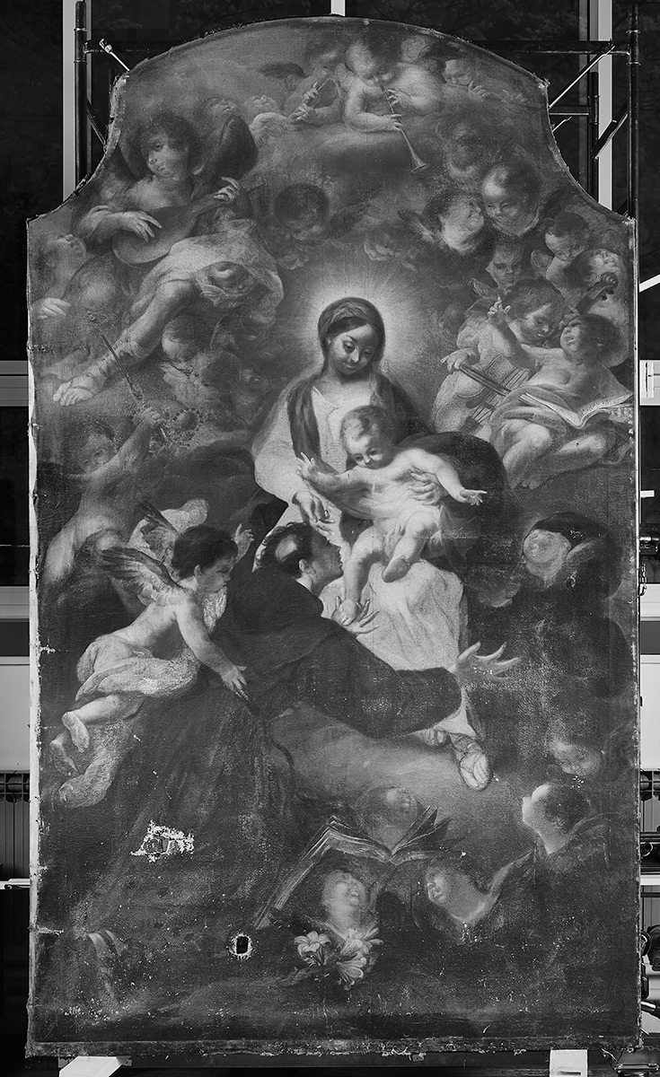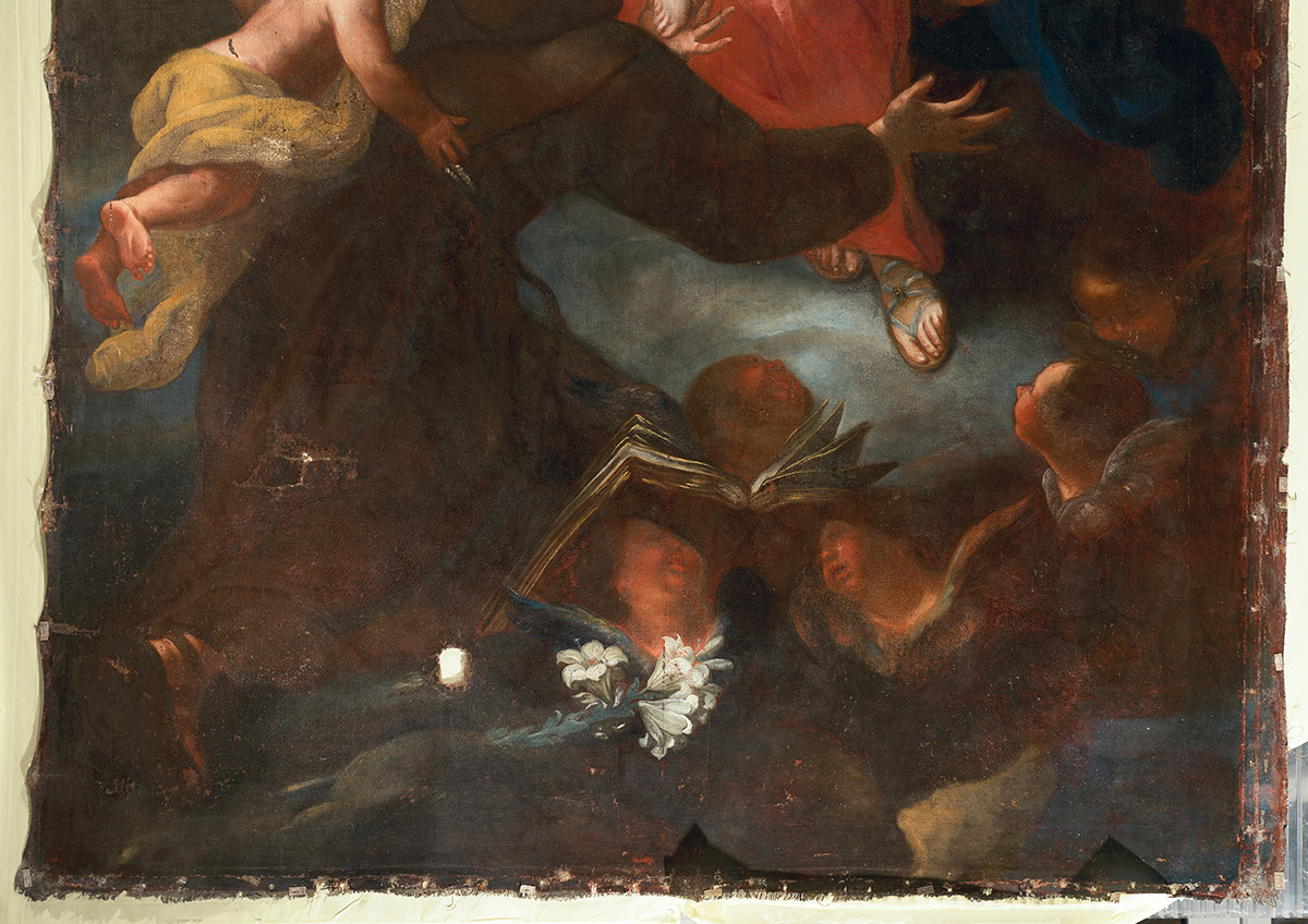 Kako ne bi došlo do daljnjeg otpadanja boje i podloge, slika je konsolidirana akrilnim ljepilom. Prije konzervatorsko-restauratorskih radova na slici su obavljeni istraživački radovi analizom višeslojnog oksidiranog laka i rekonstruiranih oštećenja. Istraživanja su izvedena snimanjem slike tehnikama ultraljubičaste fluorescencije i infracrvene reflektografije, a potom su provedene probe uklanjanja naslaga nečistoće, slojeva laka, diskoloriranog retuša i zakita. Temeljem rezultata istraživanja utvrđeno je stanje slike i određena metodologija daljnjih radova. Nakon uklanjanja nečistoće, potamnjelog laka i prethodnih intervencija, perforacije nosioca su sanirane, a gubici u njemu nadoknađeni intarzijama. Oštećenja u sloju kredno-tutkalne podloge rekonstruirana su akrilnim kitom koji je obrađen u teksturi originala. Slika je potom podstavljena novim platnom i (elastičnim sustavom s pomoću opruga) napeta na novoizrađeni drveni podokvir. Tim sustavom slici je osigurana stalna napetost i jednostavna demontaža s podokvira. Mjesta na kojima je slikani sloj nedostajao tonski su podložena gvaš bojama, nakon čega je slika lakirana. Završni retuš izveden je restauratorskim smolnim bojama, a potom je nanesen lak u spreju.