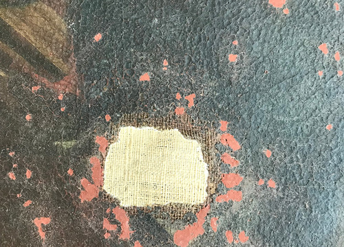 Slika je ugrađena u ukrasni okvir tako da je blago odvojena od okvira kako bi elastični sustav opruga mogao funkcionirati, odnosno održavati konstantnu napetost slike. Djelo je vraćeno vlasniku, a zbog nepovoljnih mikroklimatskih uvjeta u crkvi Presvijetle kraljice mora, izloženo je u crkvi Gospe od Sedam žalosti, poznatijoj kao Oratorij. (SR)