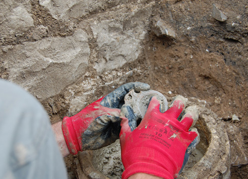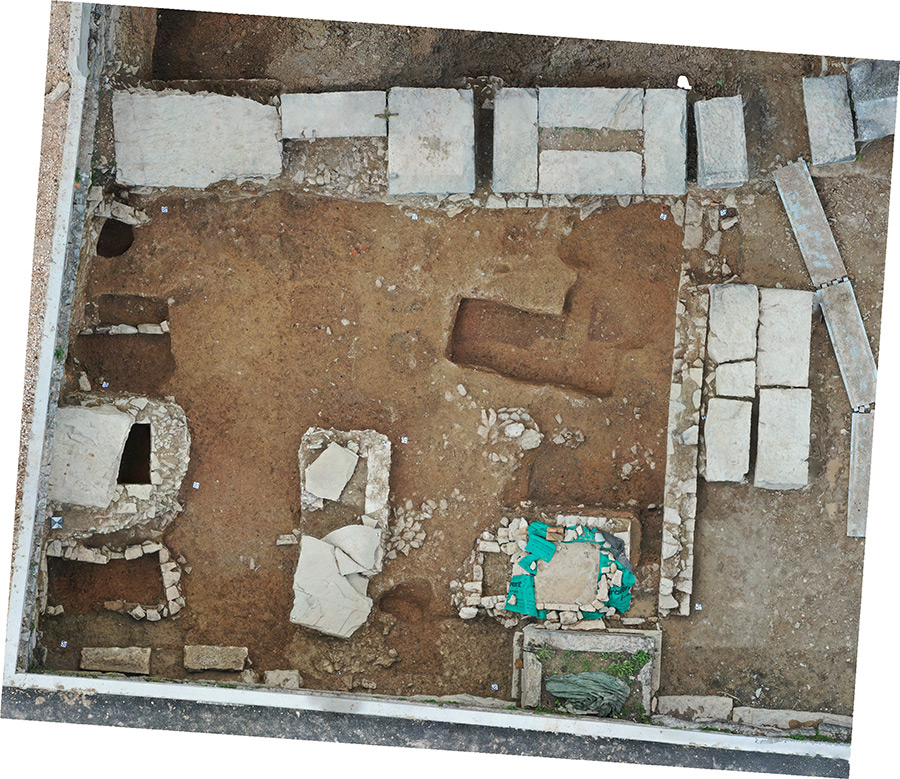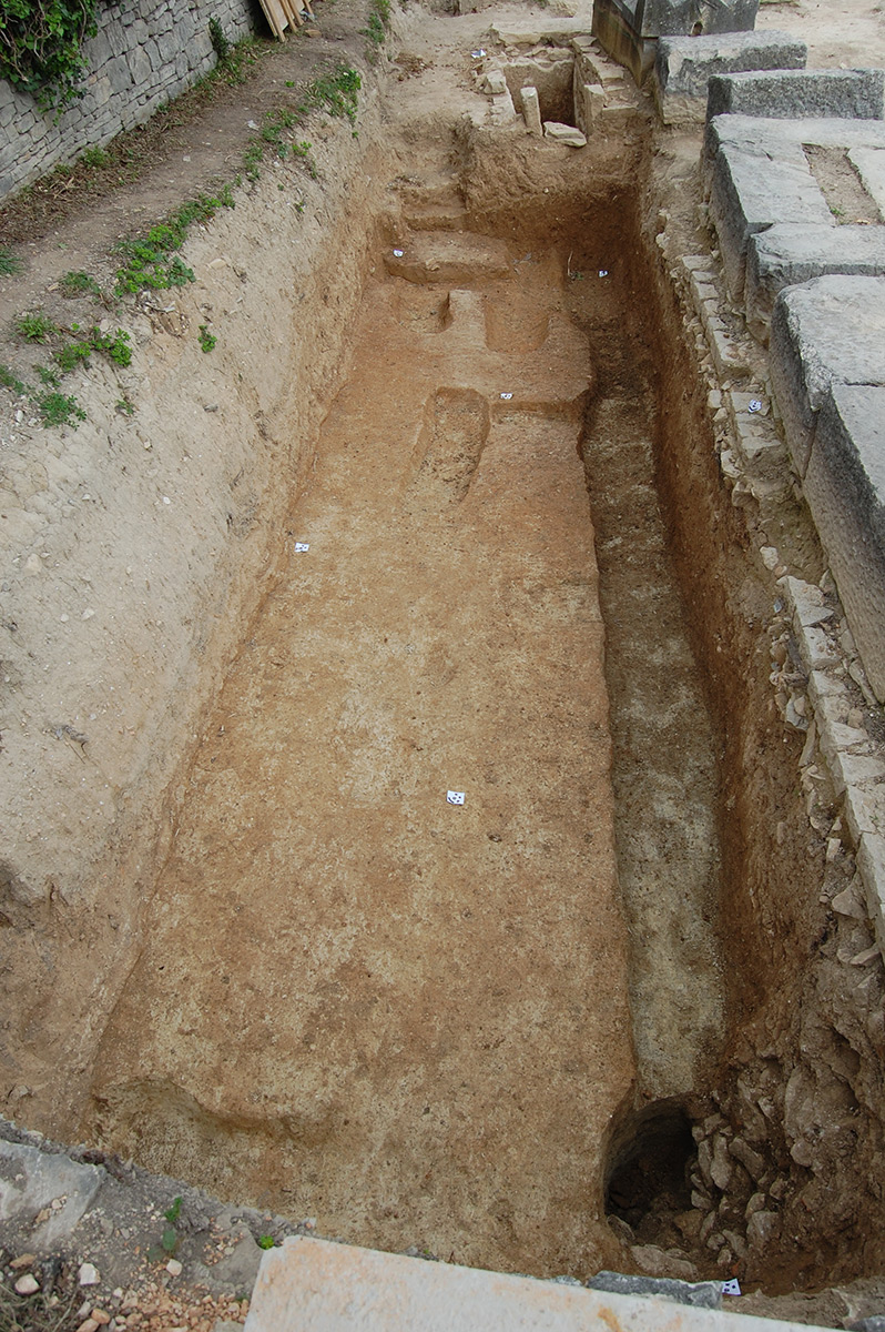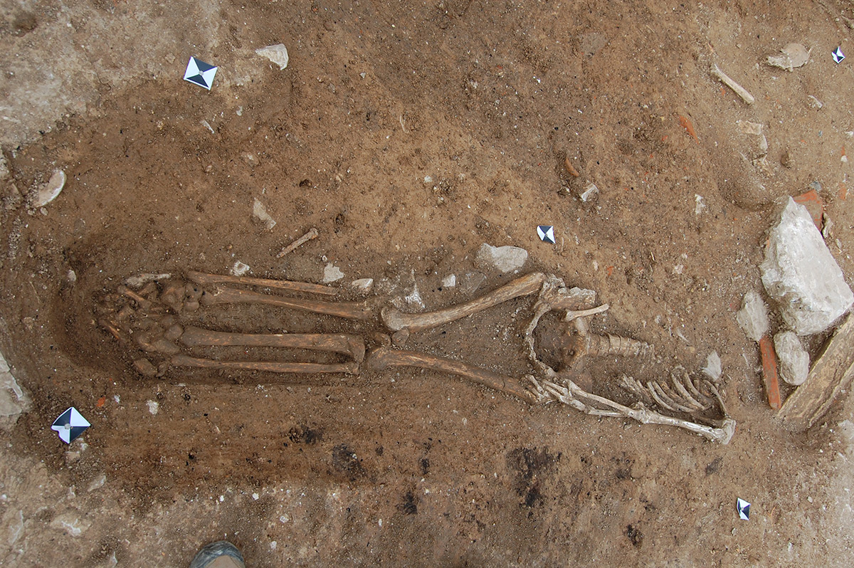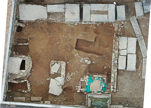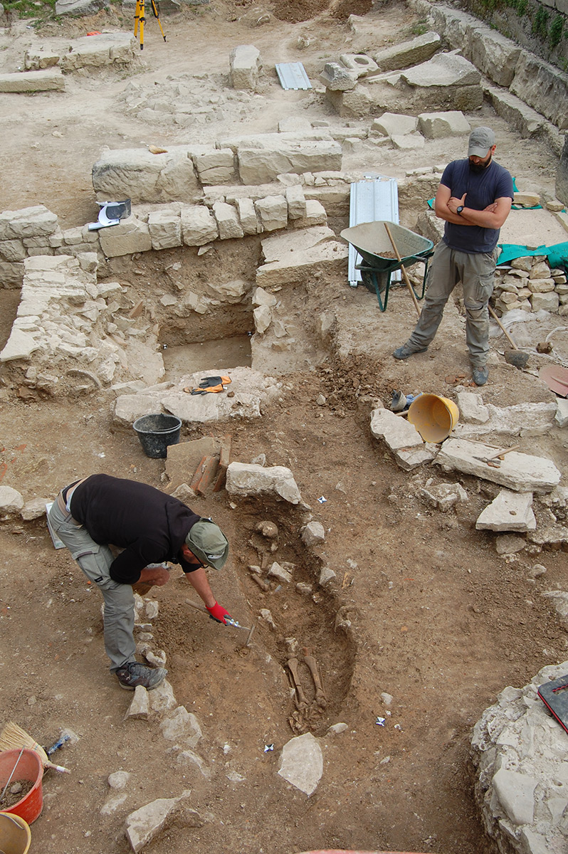 U 2. stoljeću prevladava kosturni način ukopa, koji do 4. stoljeća ostaje jedini način ukopa u istraženom dijelu nekropole. Pokojnici su najčešće polagani ispruženi na leđa u običnu raku, koja je ponekad bila omeđena kamenjem ili pokrivena tegulama. Nešto su rjeđi ukopi u amforama. Zidane grobnice i sarkofazi koji se koriste od 2. stoljeća, u ranijim su razdobljima opljačkani/ispražnjeni pa u njima nije bilo ostataka pokojnika. Kao prilozi, najčešće su pronađene staklene posude i keramičke svjetiljke, a u grobovima se može naći i nakit te dijelovi odjeće. (LČ)