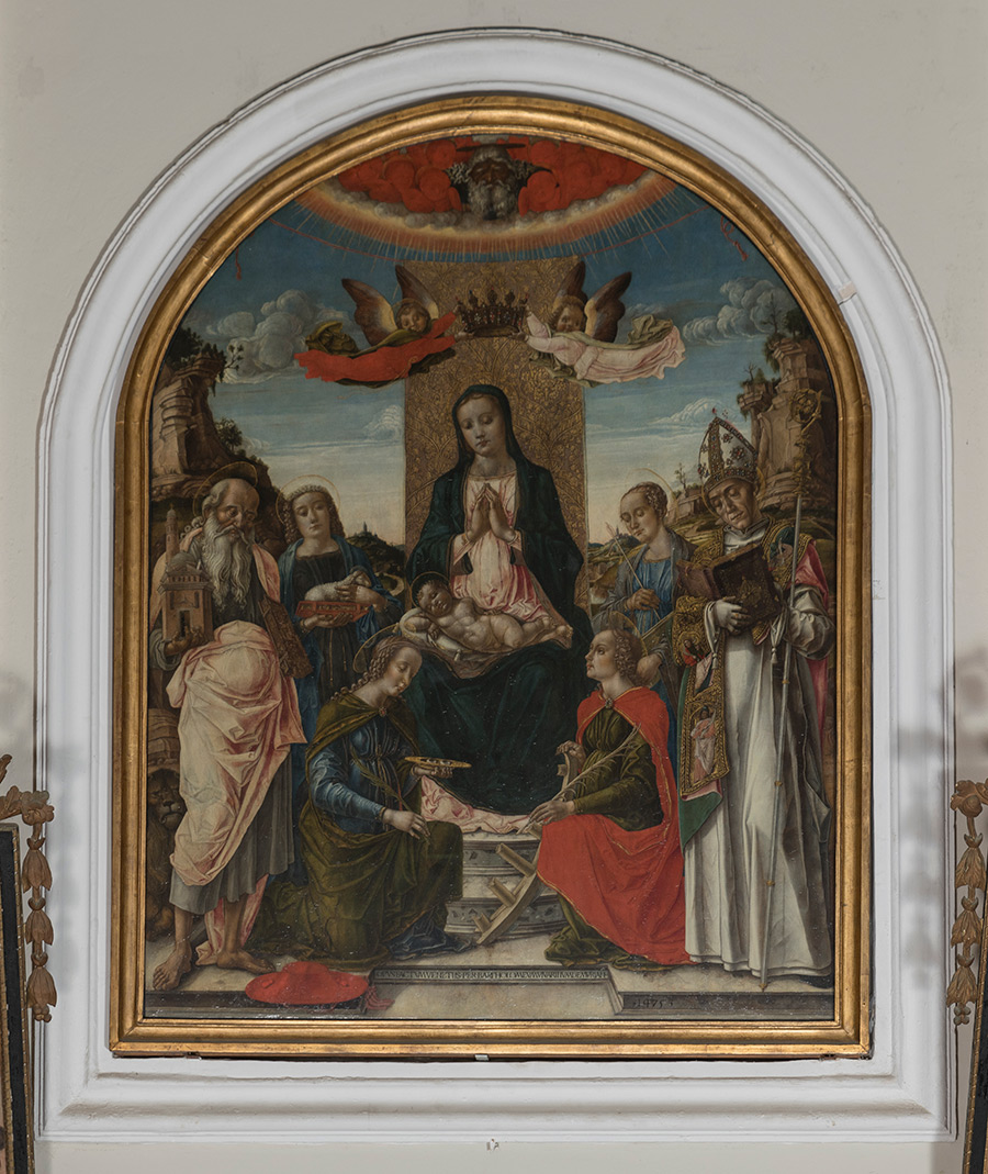 Crkva je uređena prema projektu Giovannija (Zuane) Besenghija (pogrešno čitan Berengo), a među bogatom opremom ističu se glavni oltar sv. Antuna, djelo Gašpara Albertinija iz Pirana iz 1774. godine, te pet raskošnih mramornih oltara koje je pomorski kapetan Gašpar Kraljeto otkupio iz ukinute crkve Santa Croce della Giudeca u Veneciji. Crkva obiluje i vrijednim umjetničkim djelima i kvalitetnim obrtničkim radovima. Među štafelajnim slikama ističe se pala Bogorodice s Djetetom i svecima, djelo Bartolomea Vivarinija iz 1475. godine, a među kiparskim ostvarenjima veliki mramorni kip Bogorodice od Sv. Krunice s kraja 17. stoljeća. Orgulje na pjevalištu su rad znamenitoga venecijanskog graditelja orgulja Gaetana Callida iz 1782. godine. U podu crkve su brojne nadgrobne ploče s natpisima i reljefnim prikazima.