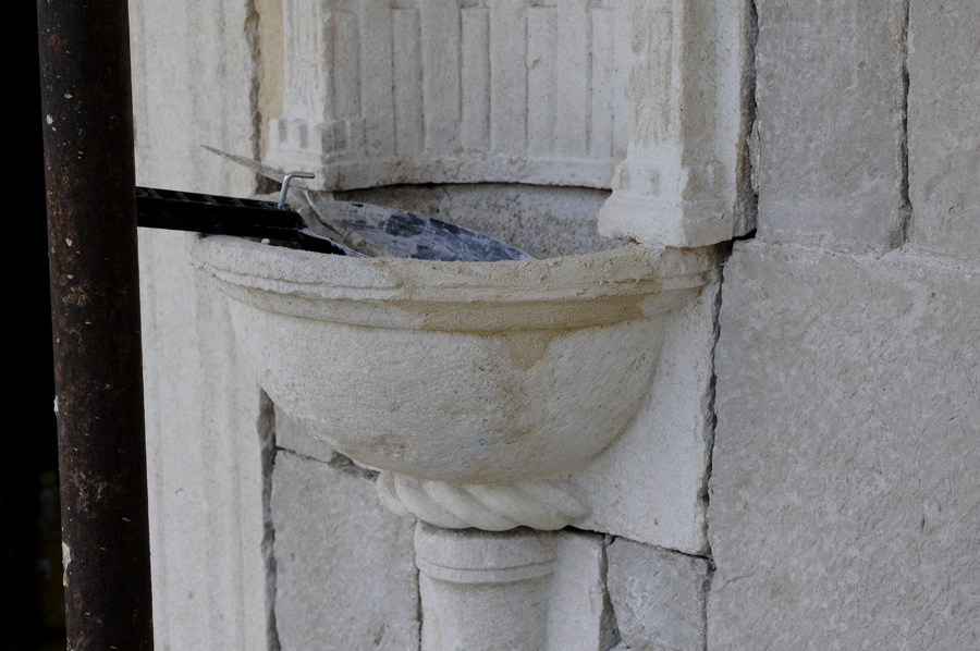 Without detailing all the works carried out, the systems installed, the materials applied, the procedures and technologies implemented, we will list only a few of the treatments performed during this exceptionally complex project: the replacement of the roof and all ceiling structures, the recovery of the remaining parts of the structure, other construction and craft work with maximum preservation of the existing structures, the careful dismantling and reassembling of the existing materials and furnishings (portions of the original roofing, marble and other stone tessellations, marble stairs in the interior, the exterior stone staircase), the fabrication of new furnishings modelled after the existing ones (stone closets, decorative ribs in the vaulting of the portico, pieces of carpentry and building fittings, the staircase balustrade) and a restitution of some elements of the façade according to contemporaneous examples of the Dubrovnik villa architecture in the surrounding area. The entire treatment was, as earlier mentioned, followed and complemented by the conservation of the stone sculpture and the particularly sensitive treatment of the wall paintings in the villa interior. Conservation work on the stone sculpture was supervised by Osanna Šašinka from the Section for Stone Sculpture of the Split Department for Conservation, while the works on the wall paintings were supervised by Fani Župan from the Department for Wall Paintings and Mosaics.